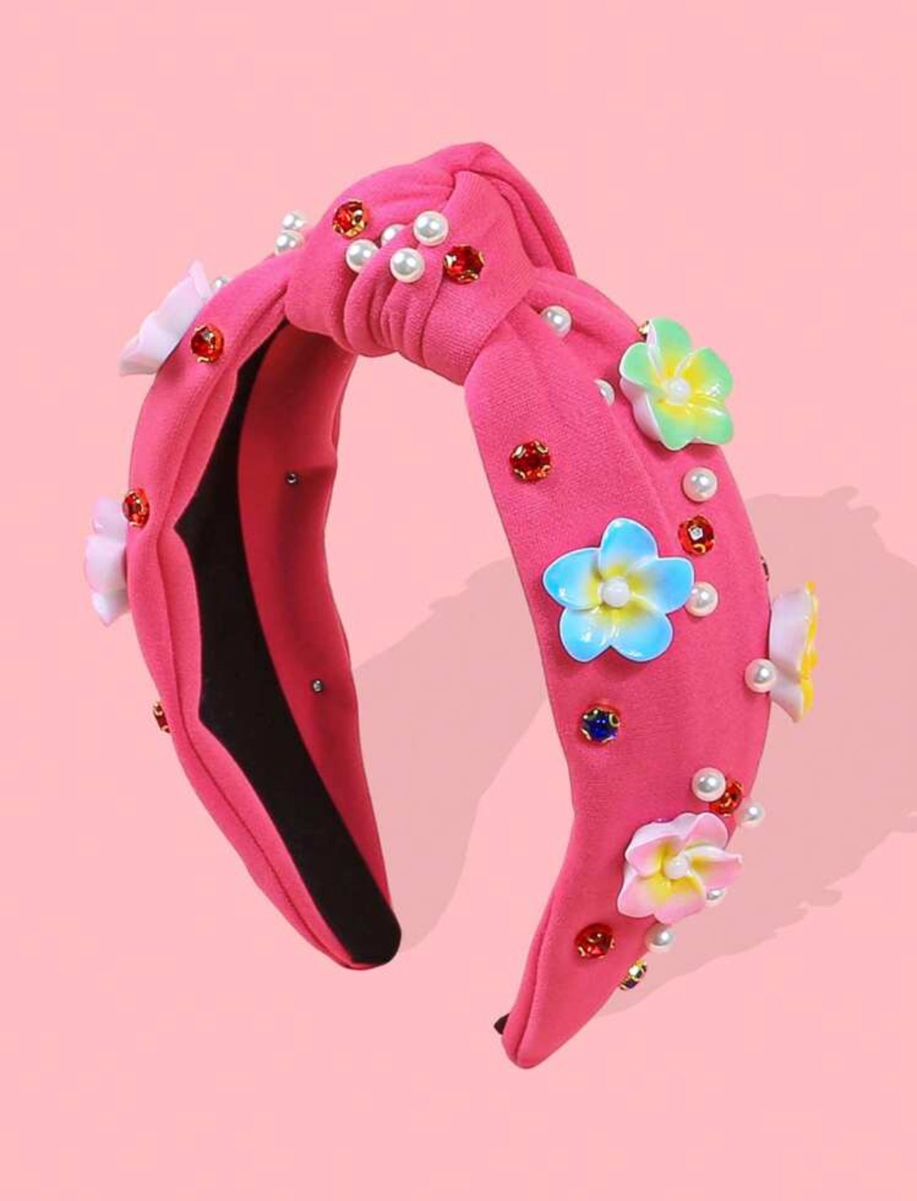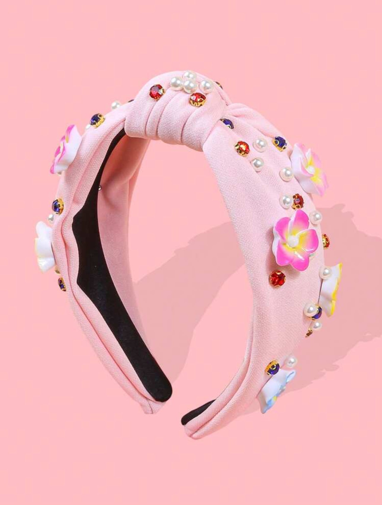 3D FLORAL HEADBAND WITH SPARKLING RHINESTONES AND PEARL EMBELLLISHMENT