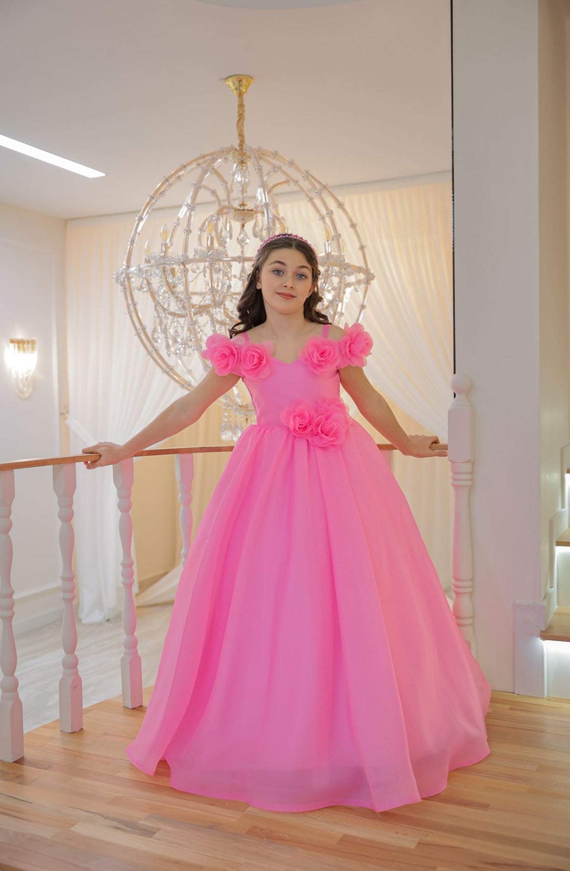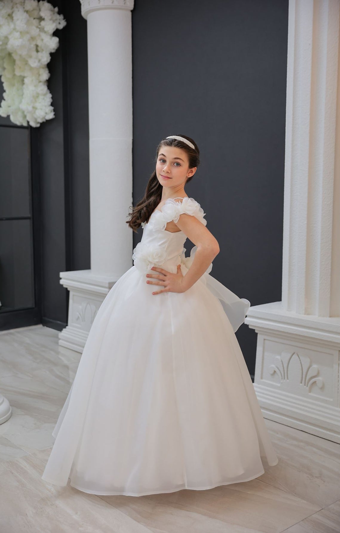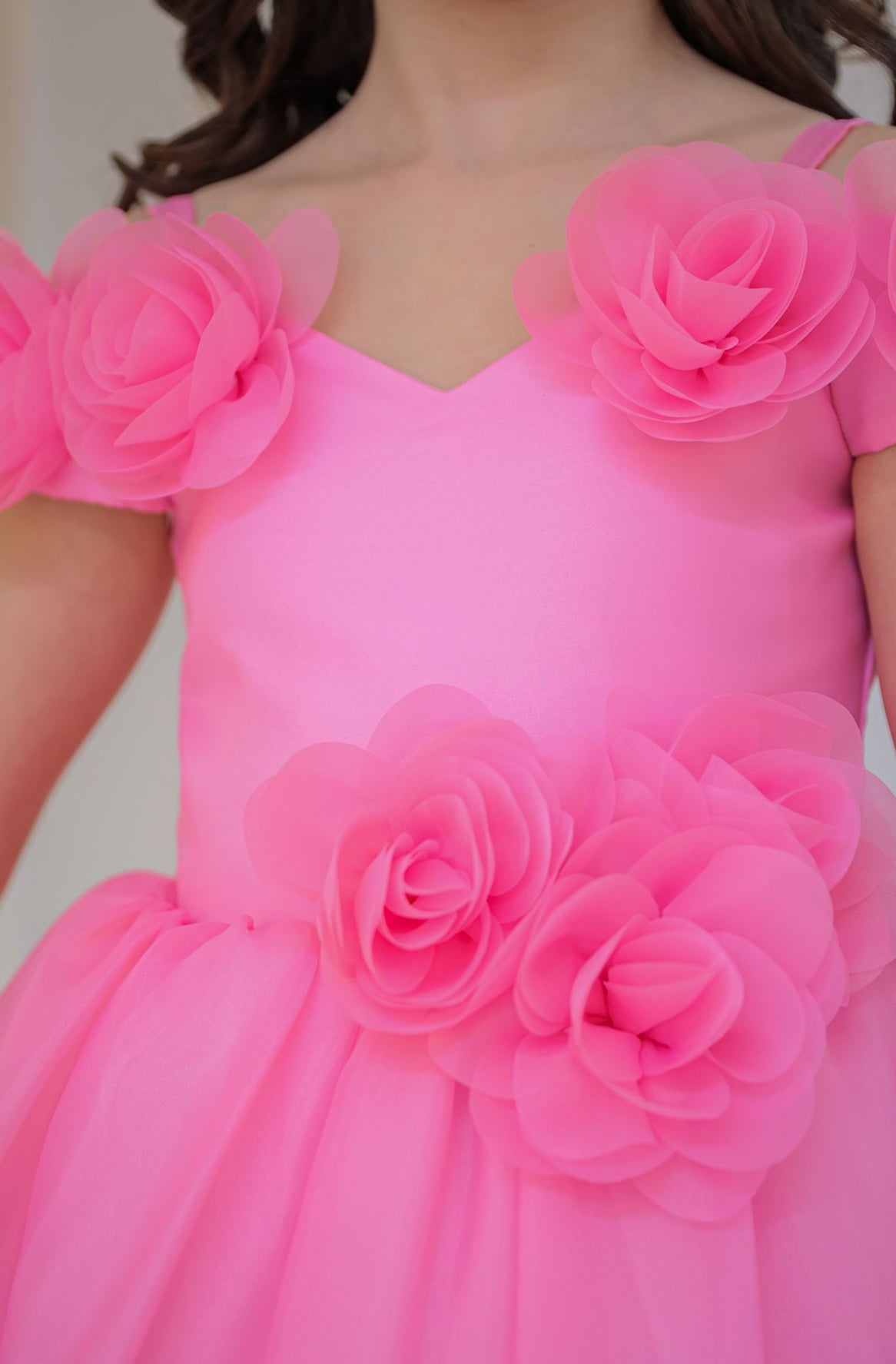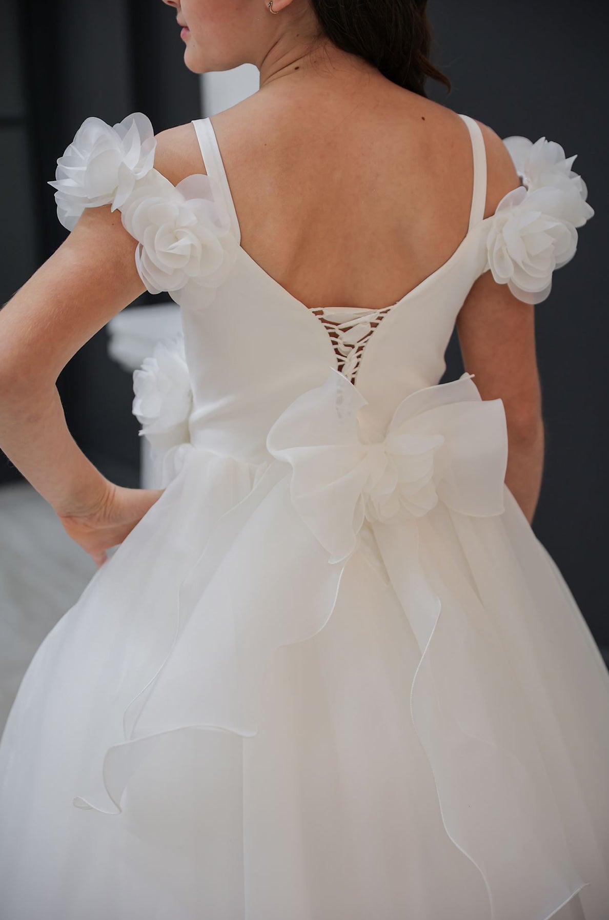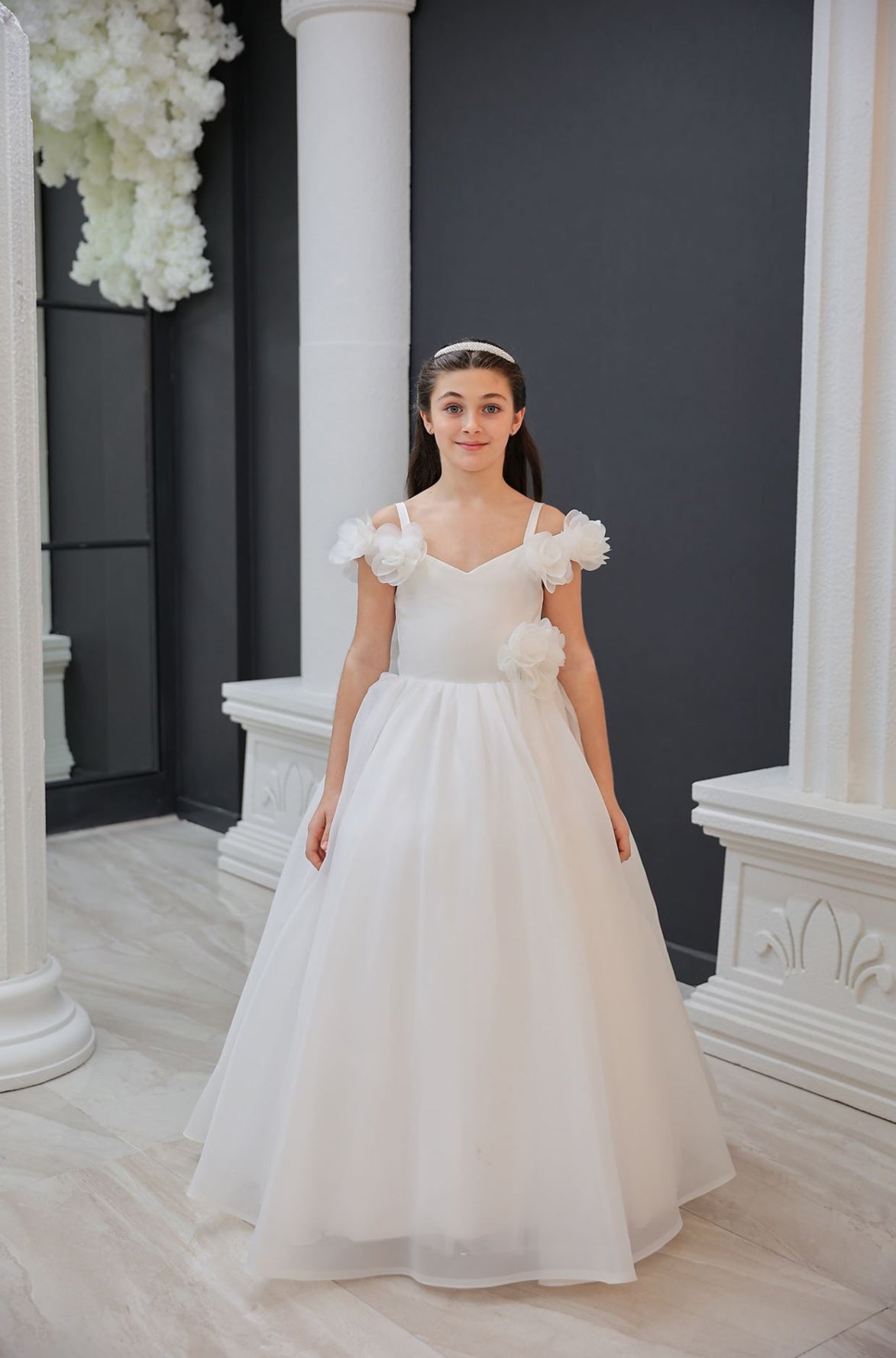 3D FLOWER DETAILED PUFFY ORGANZA TULLE BIRTHDAY WEDDING SPECIAL OCCASION DRESS 7-11 YEARS