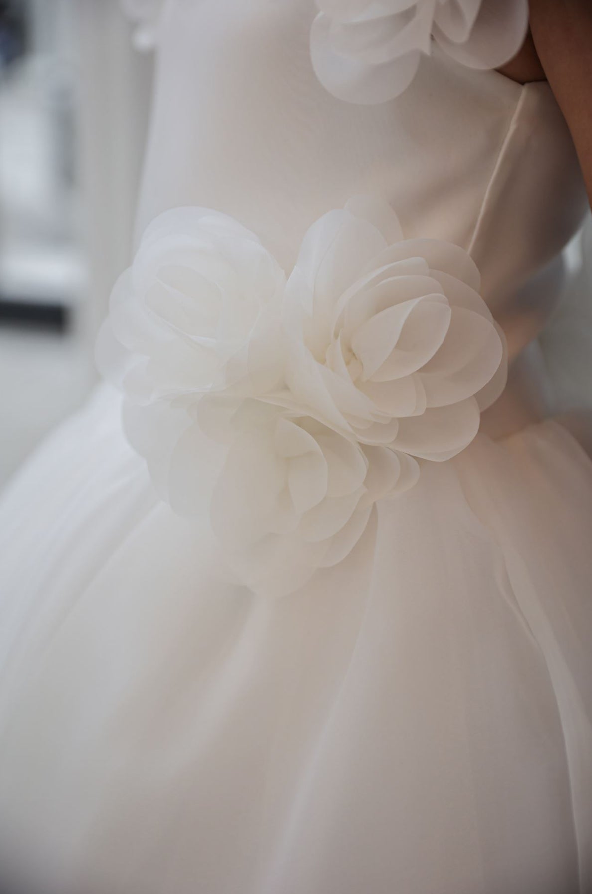 Eye-catching 3D floral embellishments on the shoulders and waist