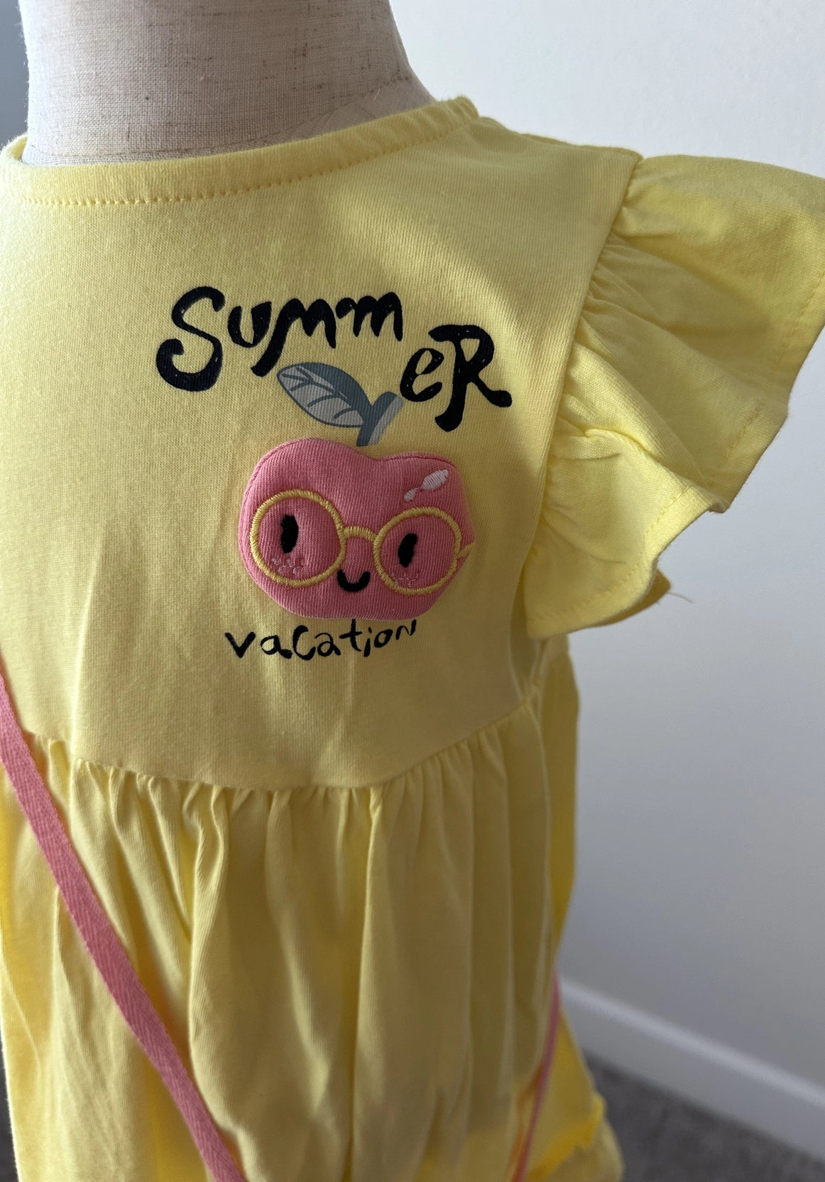 Designed for my little princesses, this dress combines fun and elegance with its soft fabric and vibrant colors, ensuring a comfortable fit. Completed with a charming bag detail, this model is a perfect choice for everyday wear, birthday parties, and special occasions during the summer!