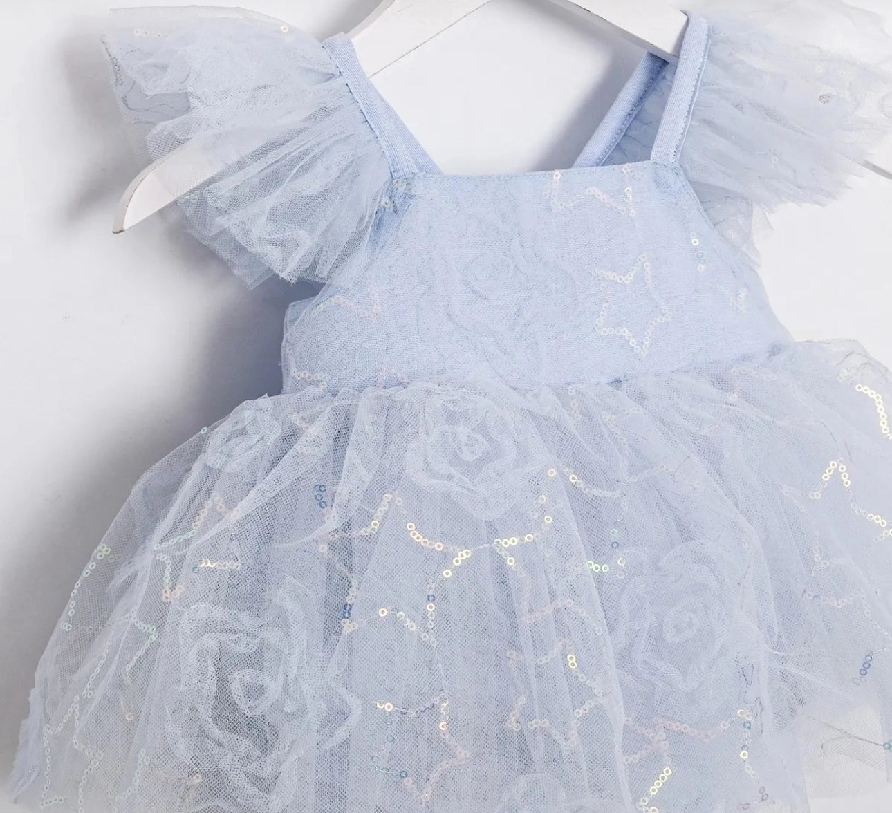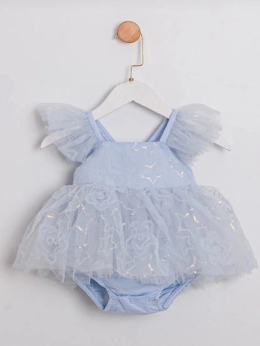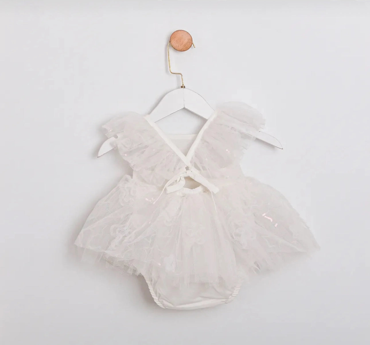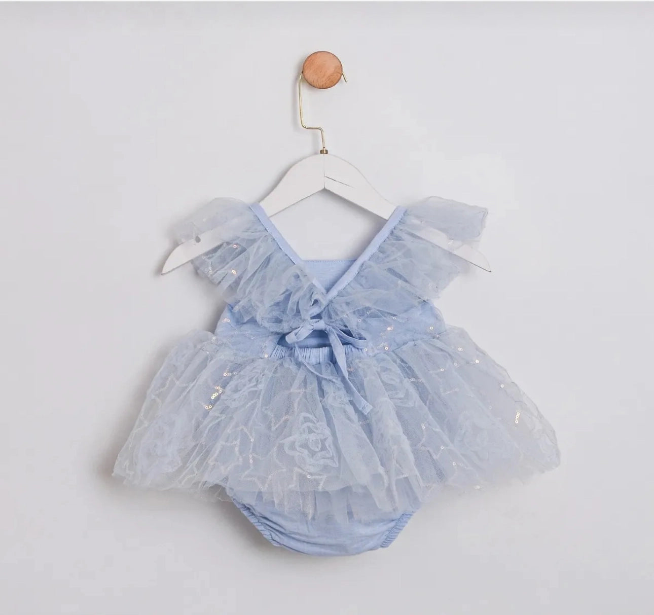 STAR SEQUIN EMBELLISHED TULLE BABY ROMPER PERFECT FOR BIRTHDAYS SPECIAL OCCASIONS AND WEDDINGS