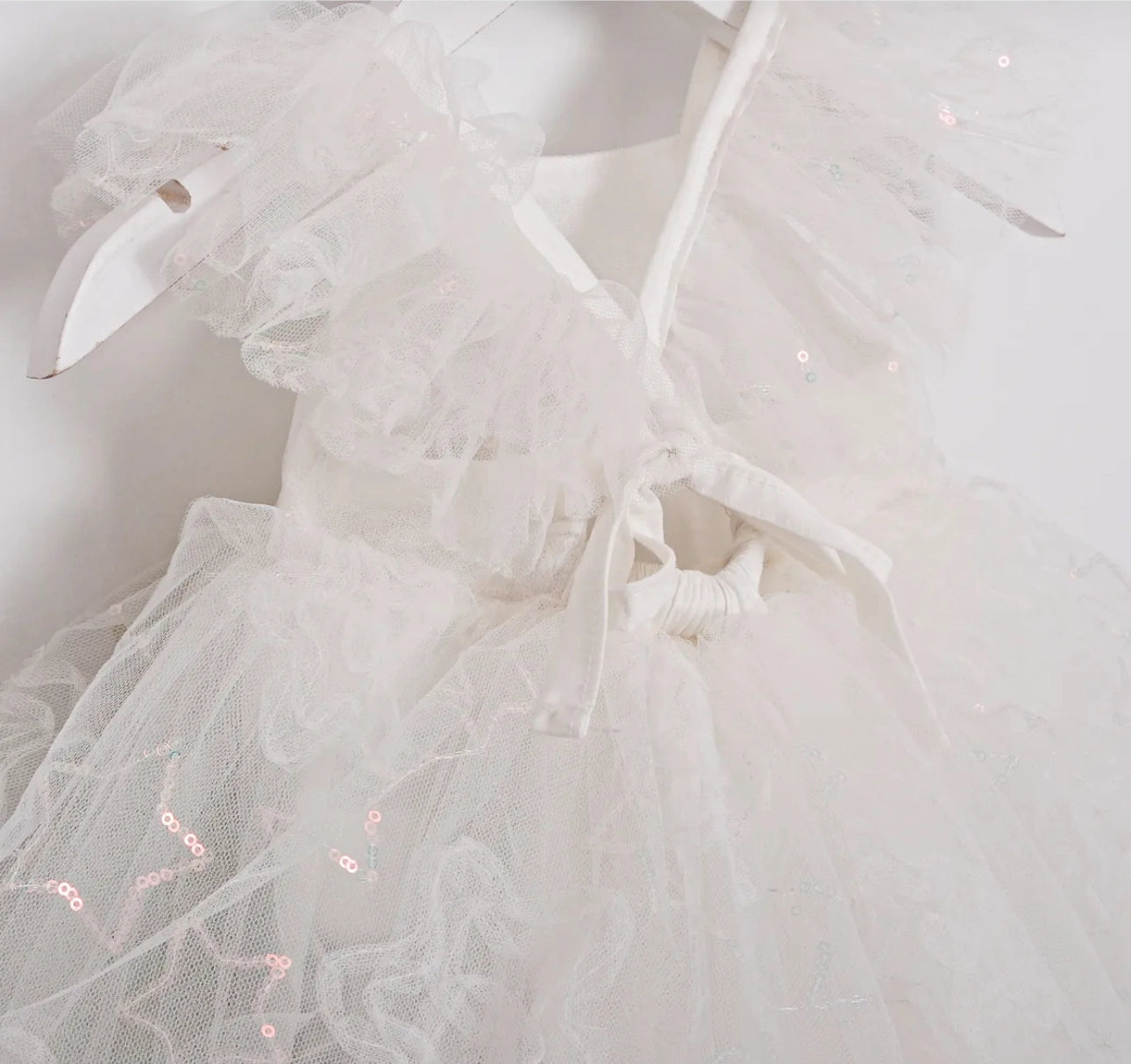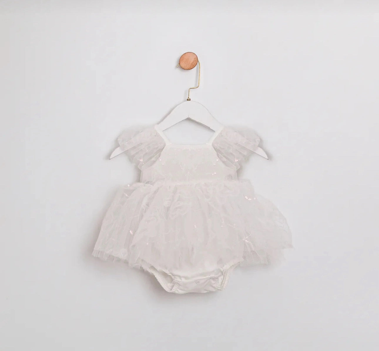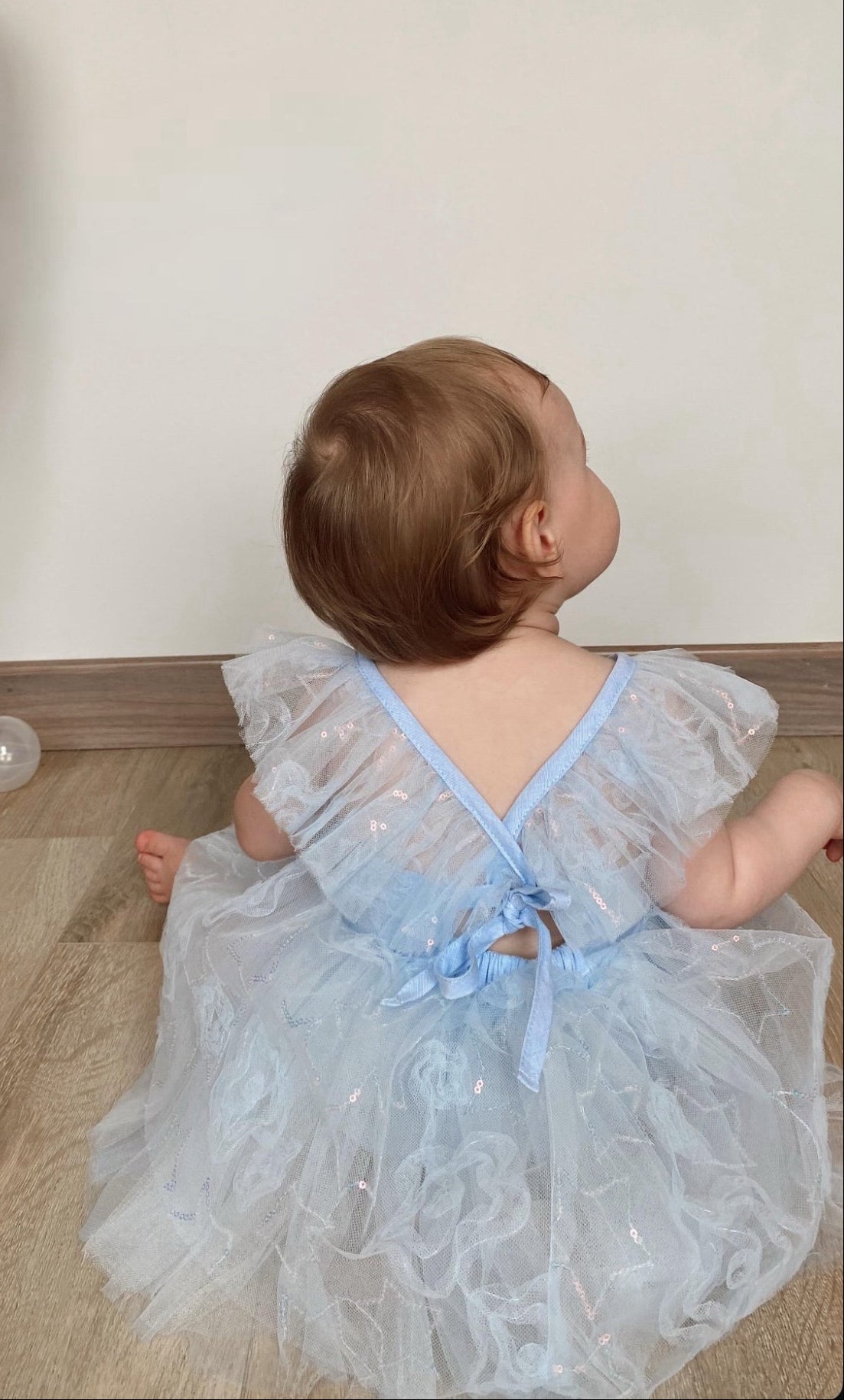 STAR SEQUIN EMBELLISHED TULLE BABY ROMPER PERFECT FOR BIRTHDAYS SPECIAL OCCASIONS AND WEDDINGS