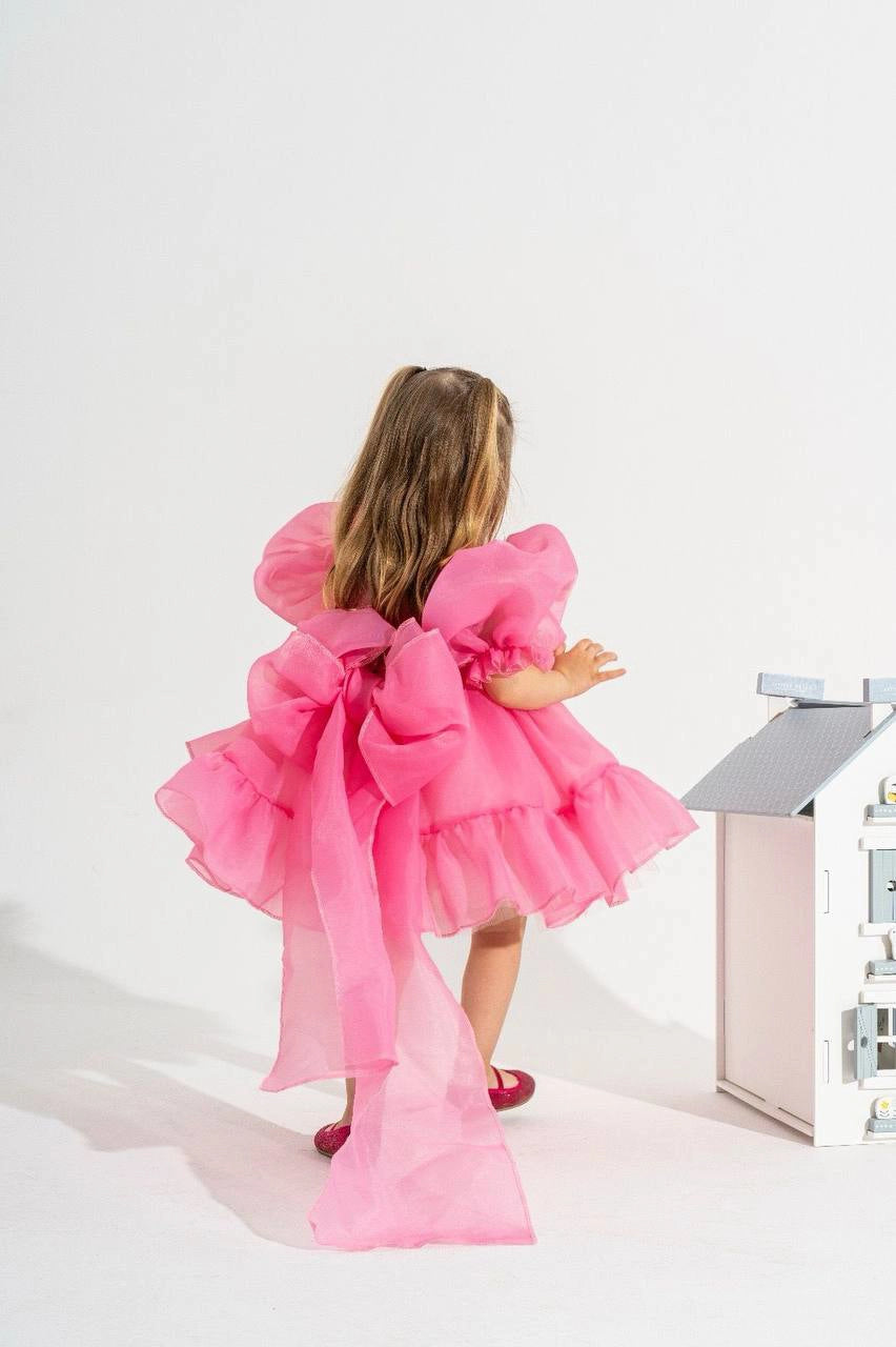 This stunning dress will make my little princesses shine on their special days with its voluminous tulle, ruffle details, and large bow embellishment. It will be an essential dress for birthday parties! ✨