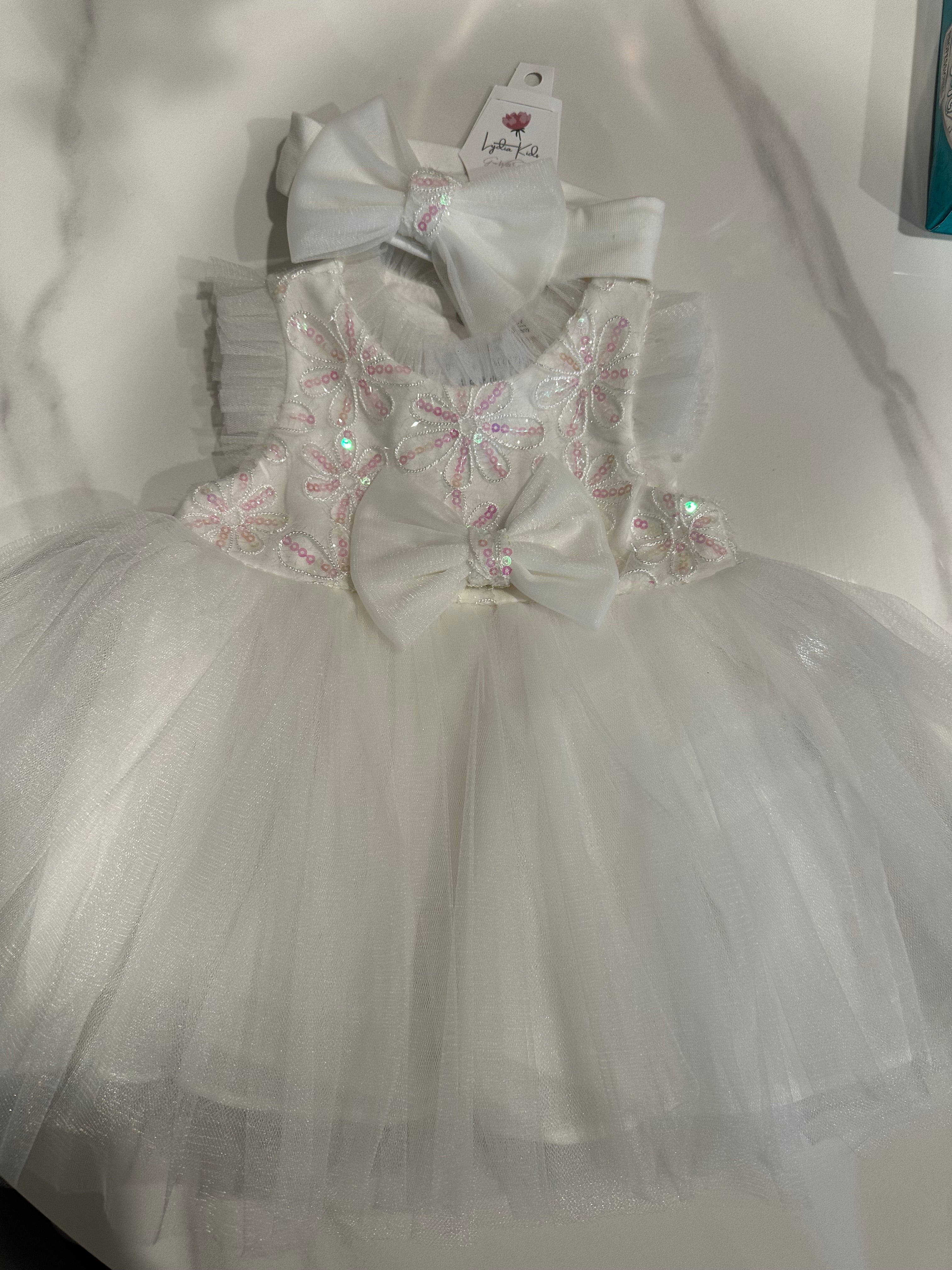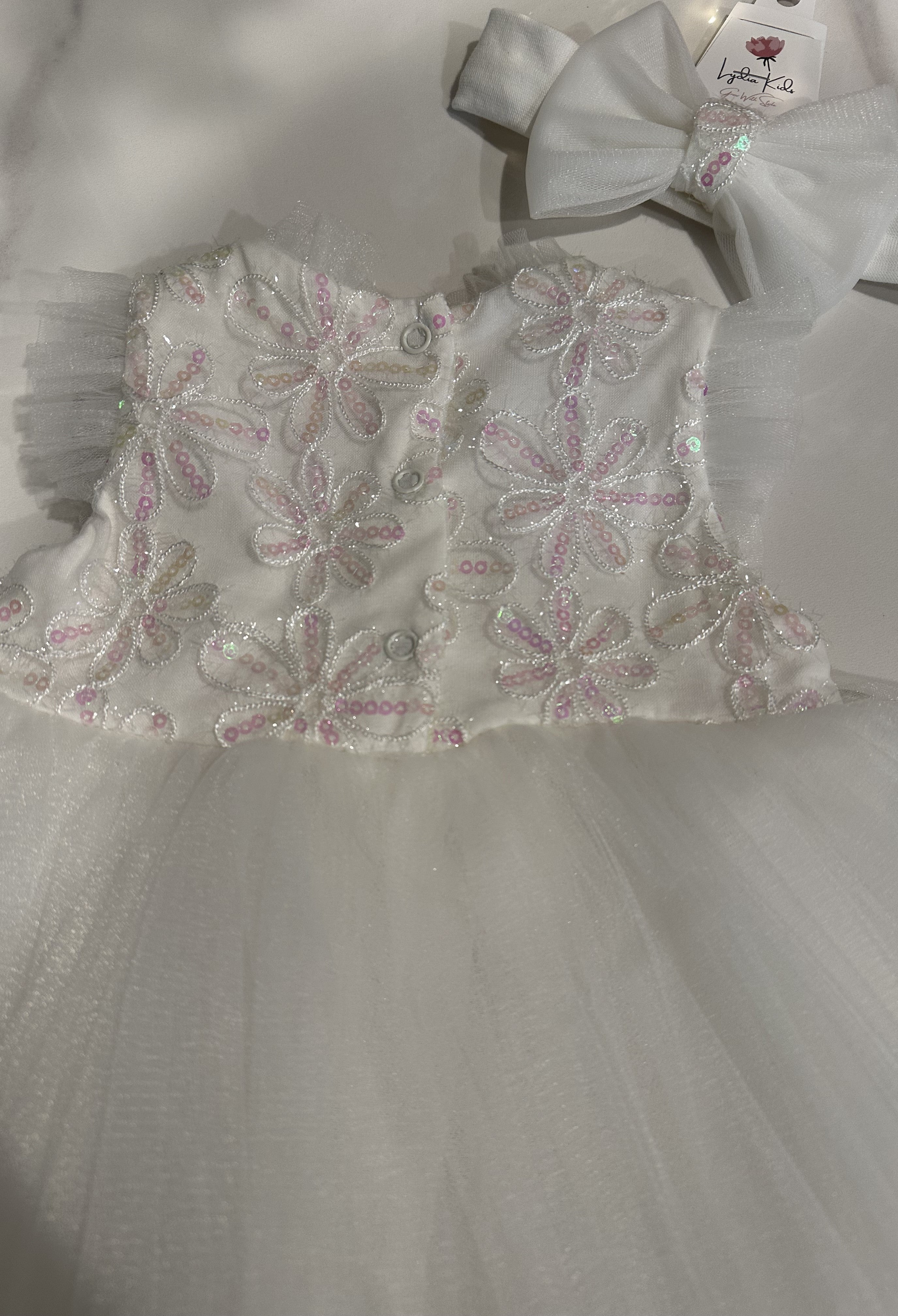 BOW BAND ACCESSORY COMBO DAISY SEQUIN TULLE SPECIAL OCCASION DRESS 6-36M