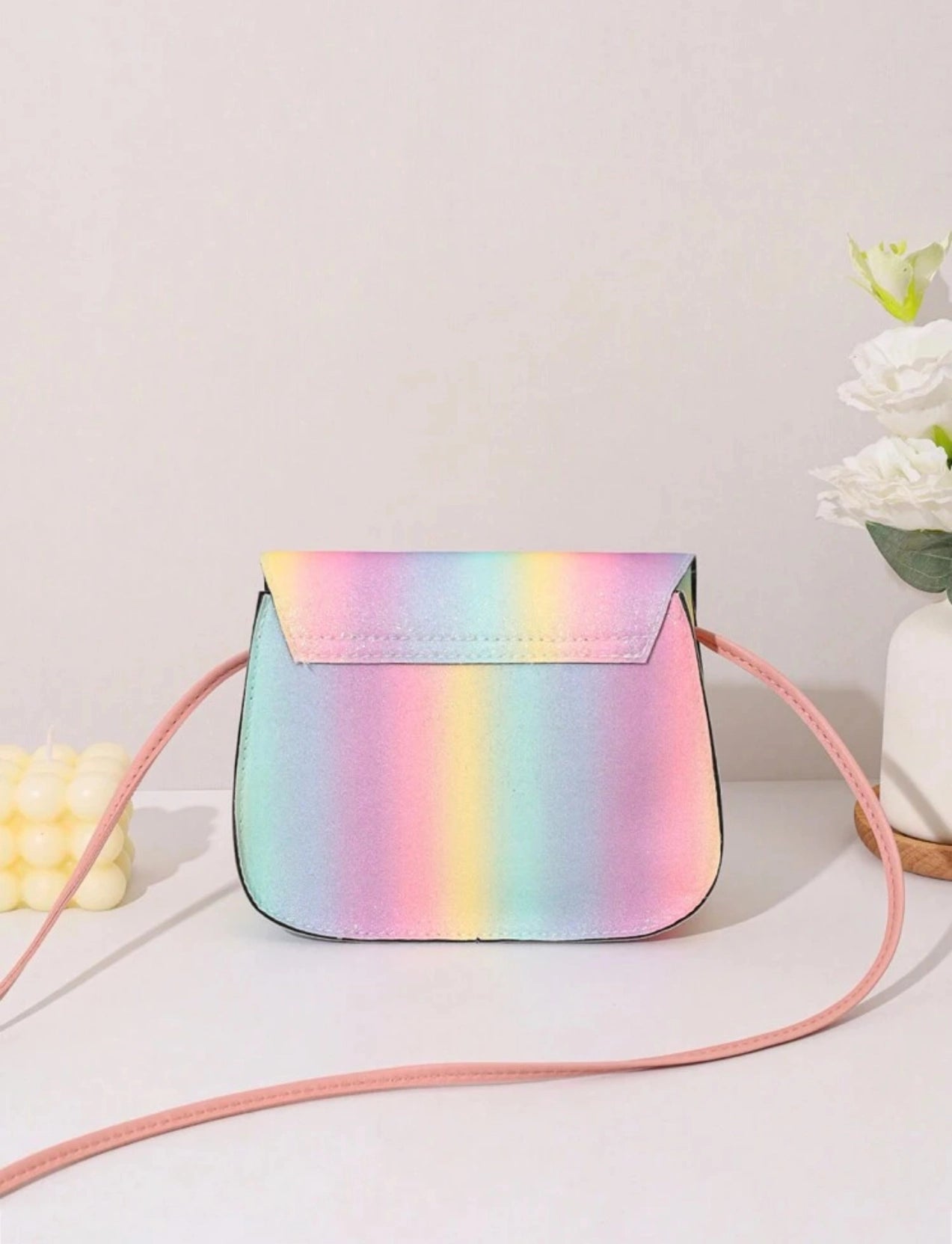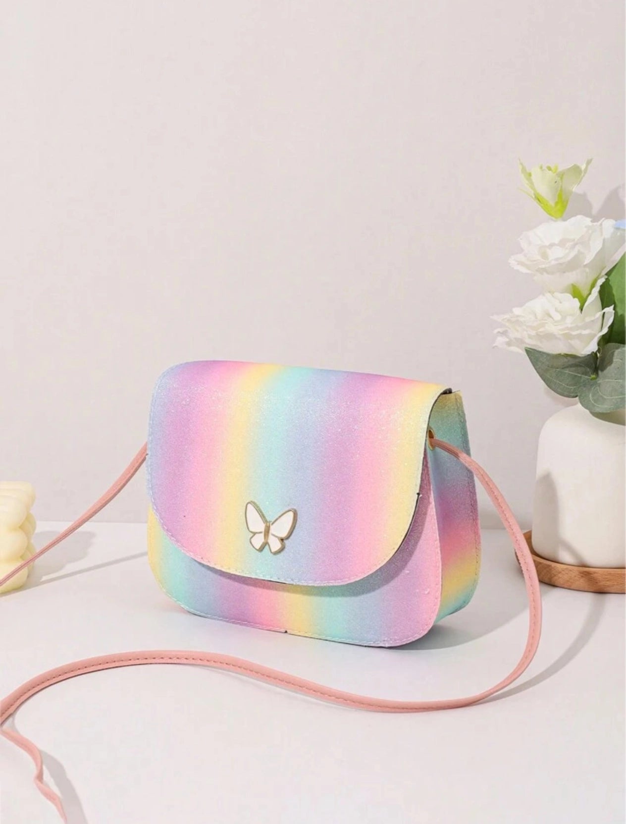 🦋 Featuring soft pastel rainbow tones and a glittery finish, this adorable bag and belt set is a true showstopper.Â