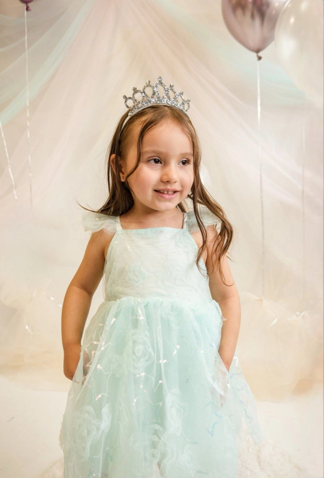CRYSTAL QUEEN CROWN ACCESSORIZED MINT GREEN PINK WHITE BABY BLUE SPARKLING PRINCESS BIRTHDAY WEDDING SPECIAL OCCASION DRESS