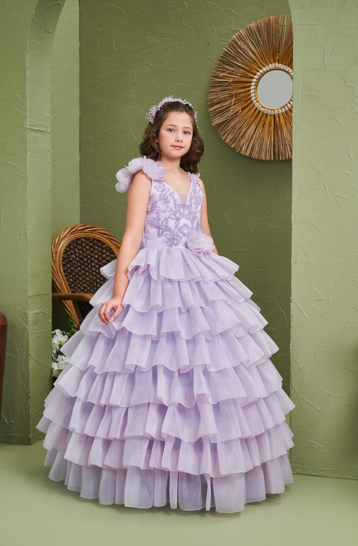 FAIRY-TALE INSPIRED LAYERED FLORAL PRINCESS WEDDING BIRTHDAY COMMUNION DRESS 7-11 YEARS