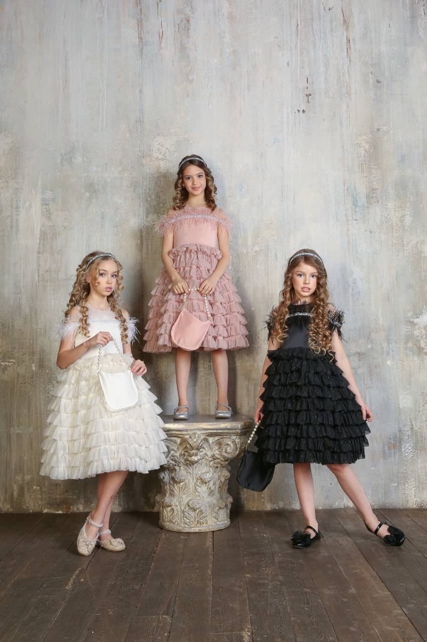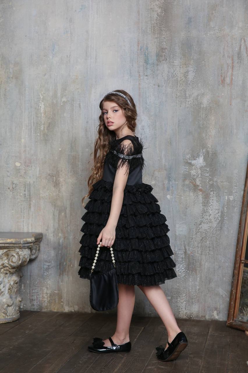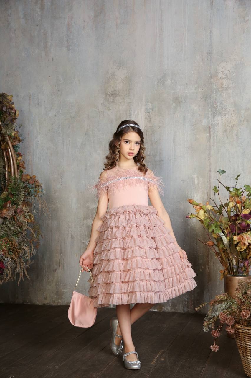 Carefully designed for our little princesses, this elegant model dazzles with its voluminous layered skirt, matching hair accessory, and cute handbag. A perfect choice for birthdays, weddings, and celebrations! 🌸👑