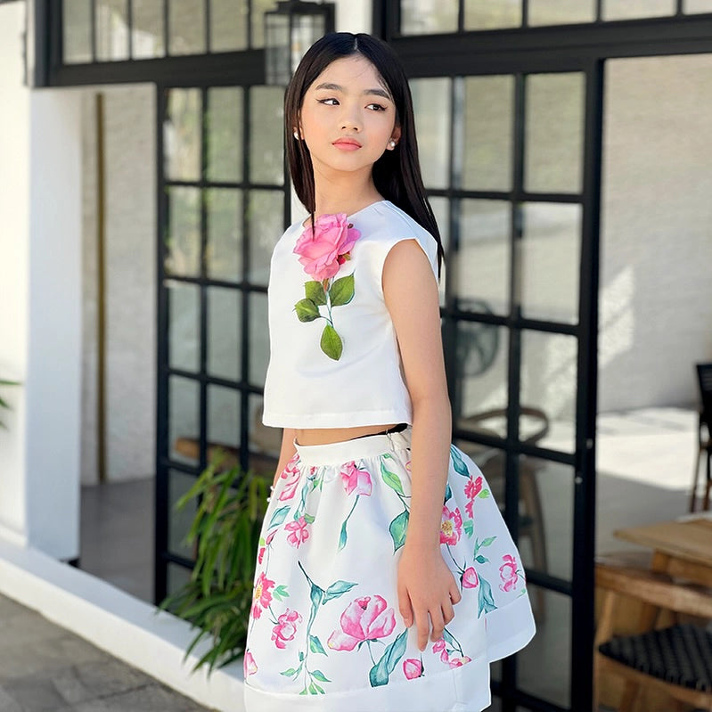 Floral Charm 2-Piece Set Reflecting the elegance of nature, the Floral Charm 2-Piece Set is specially designed for little style icons. The three-dimensional flower detail on the top and the delicate floral patterns on the skirt add a romantic and sophisticated touch to this set. Made from lightweight and breathable fabric, it ensures all-day comfort while its chic cut makes it a perfect choice for any special occasion. 💖