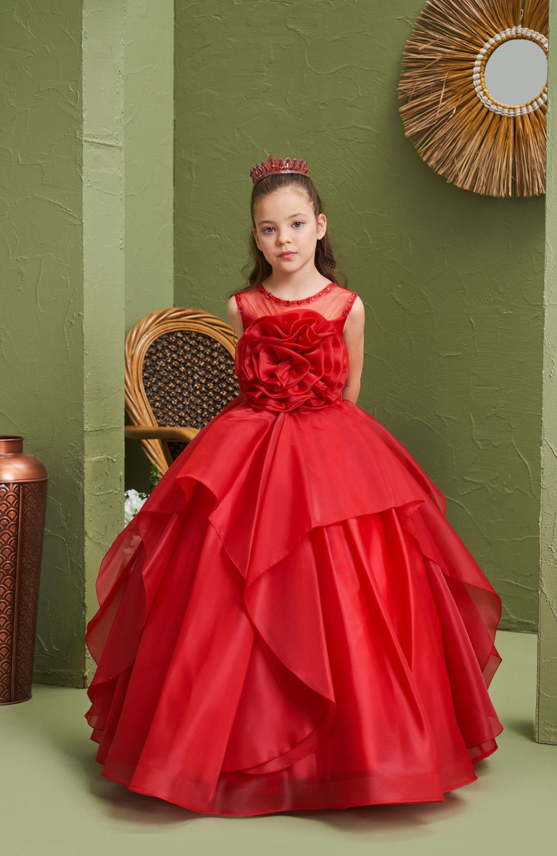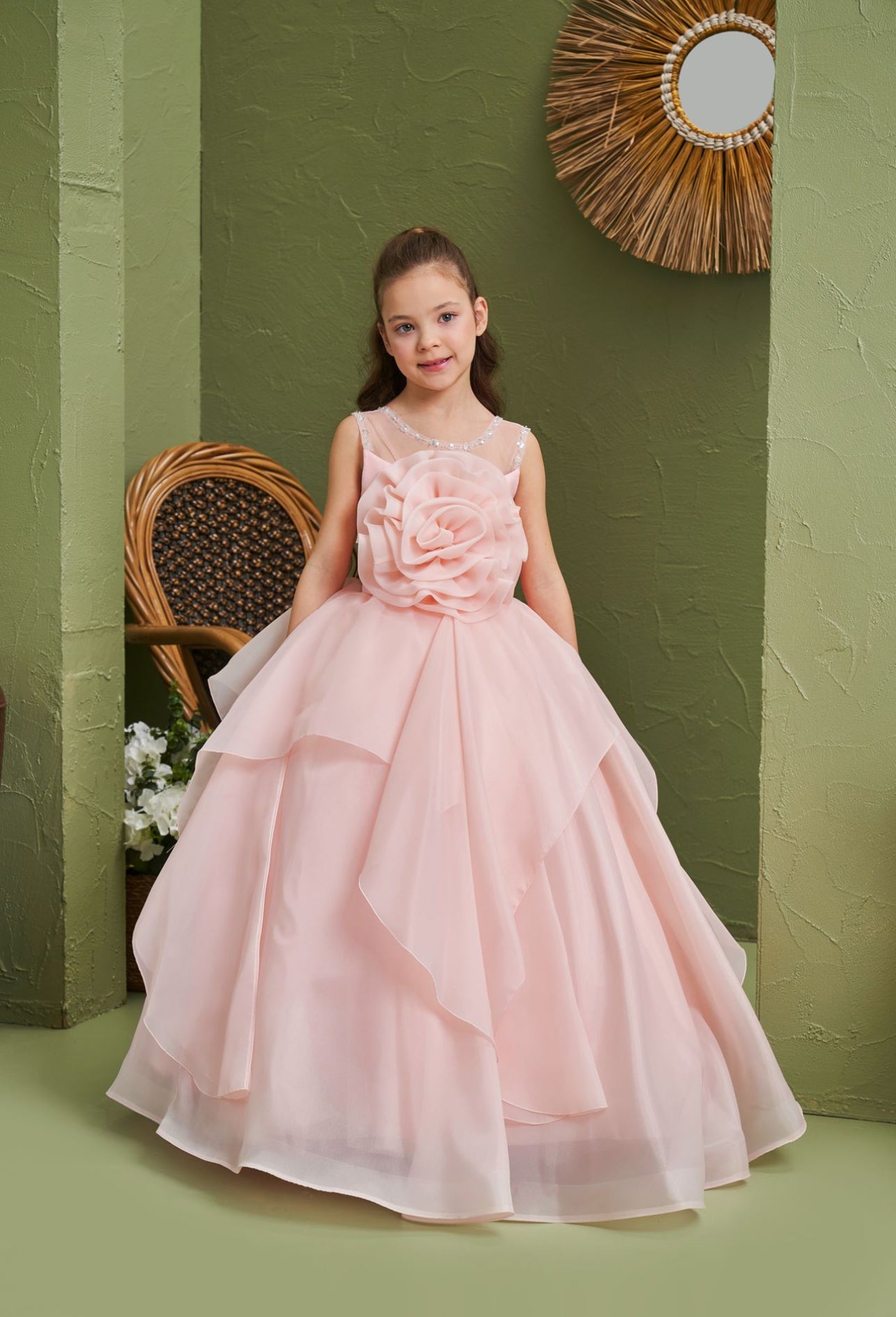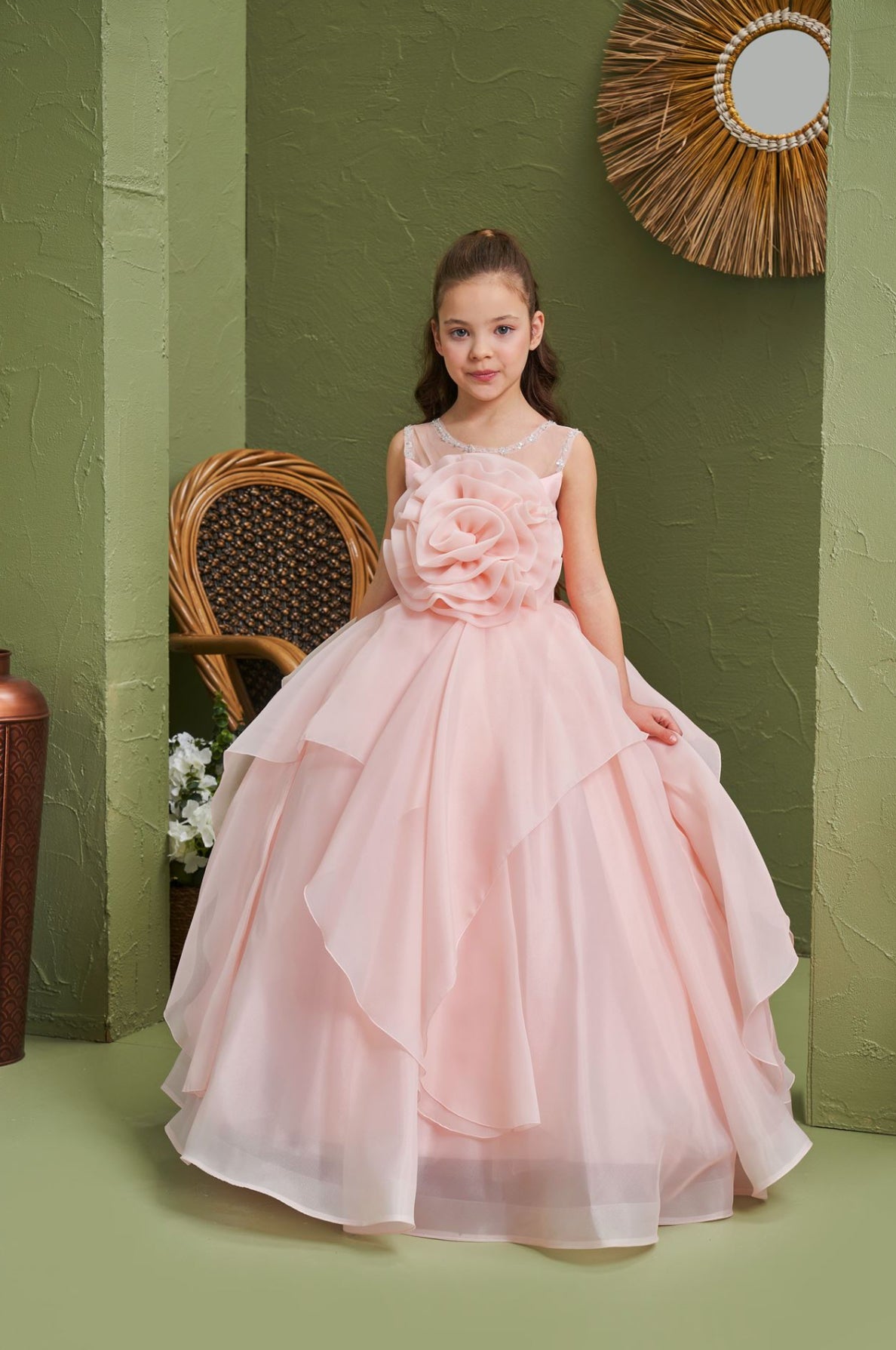 This stunning dress, specially designed for little princesses, leaves a captivating impression with its grand flower detail design. 🤍