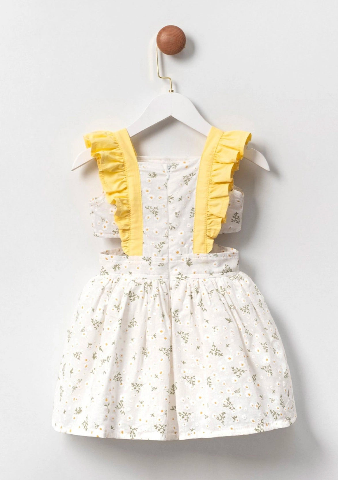 FRILLY DRESS WITH DAISY PATTERNED FLORAL HEADBAND ACCESSORY SET