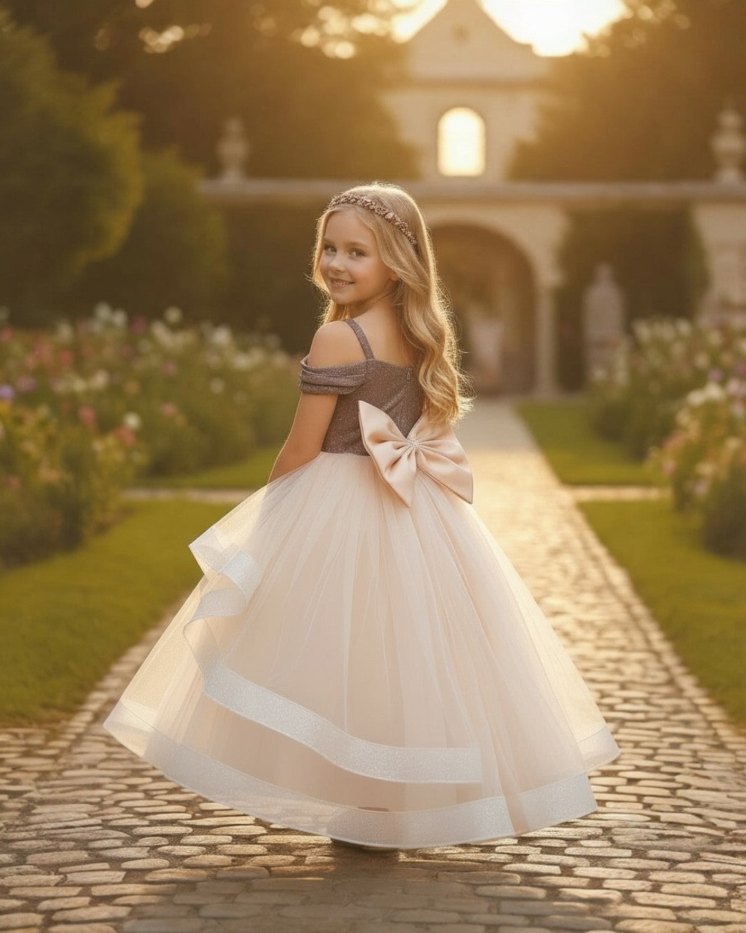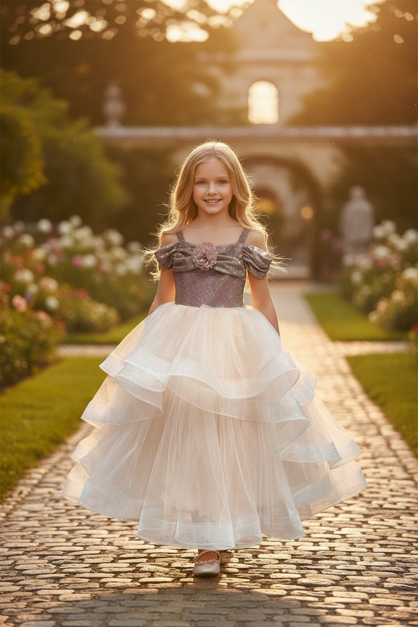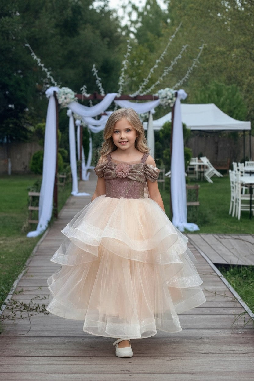 A magnificent design that combines elegance and grandeur for my little princesses! Featuring a shimmering bodice detail, a voluminous, long, and layered tulle skirt, this dress offers a breathtaking look. A magical choice for our princesses on special occasions! 💖