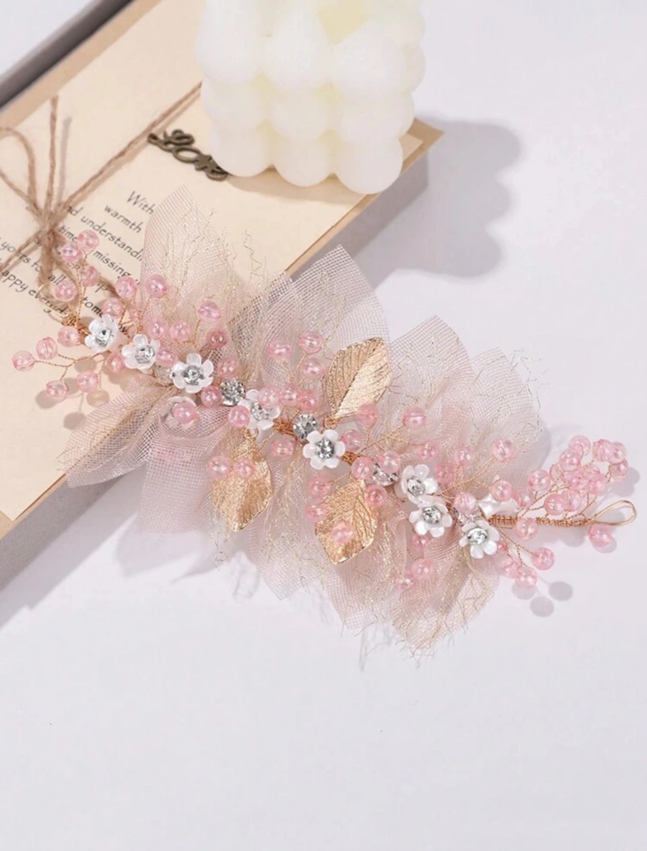 WARNING: CHOKING HAZARD - Small parts, not for children under 3 years. Details: Bow, Pearls, Rhinestone Color: Pink Pattern Type: Colorblock, Plants Style: Royal Material: ABS