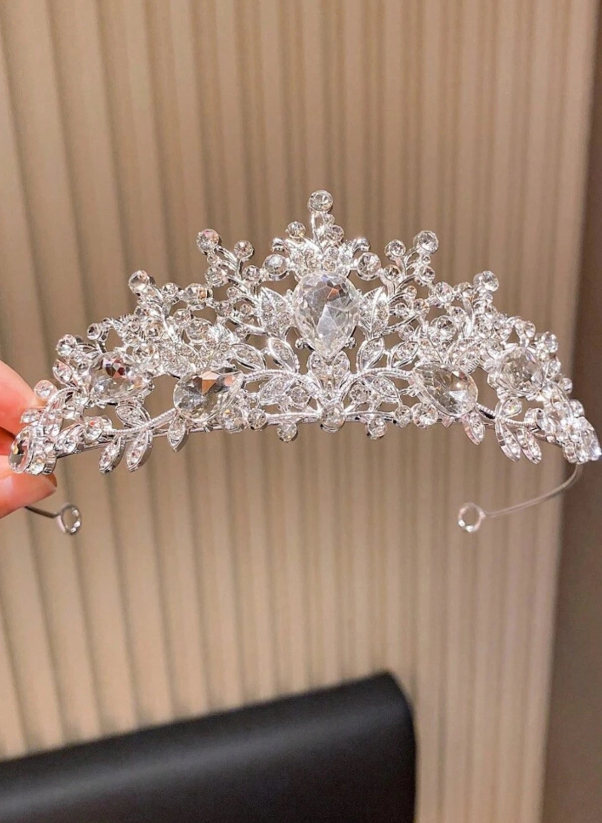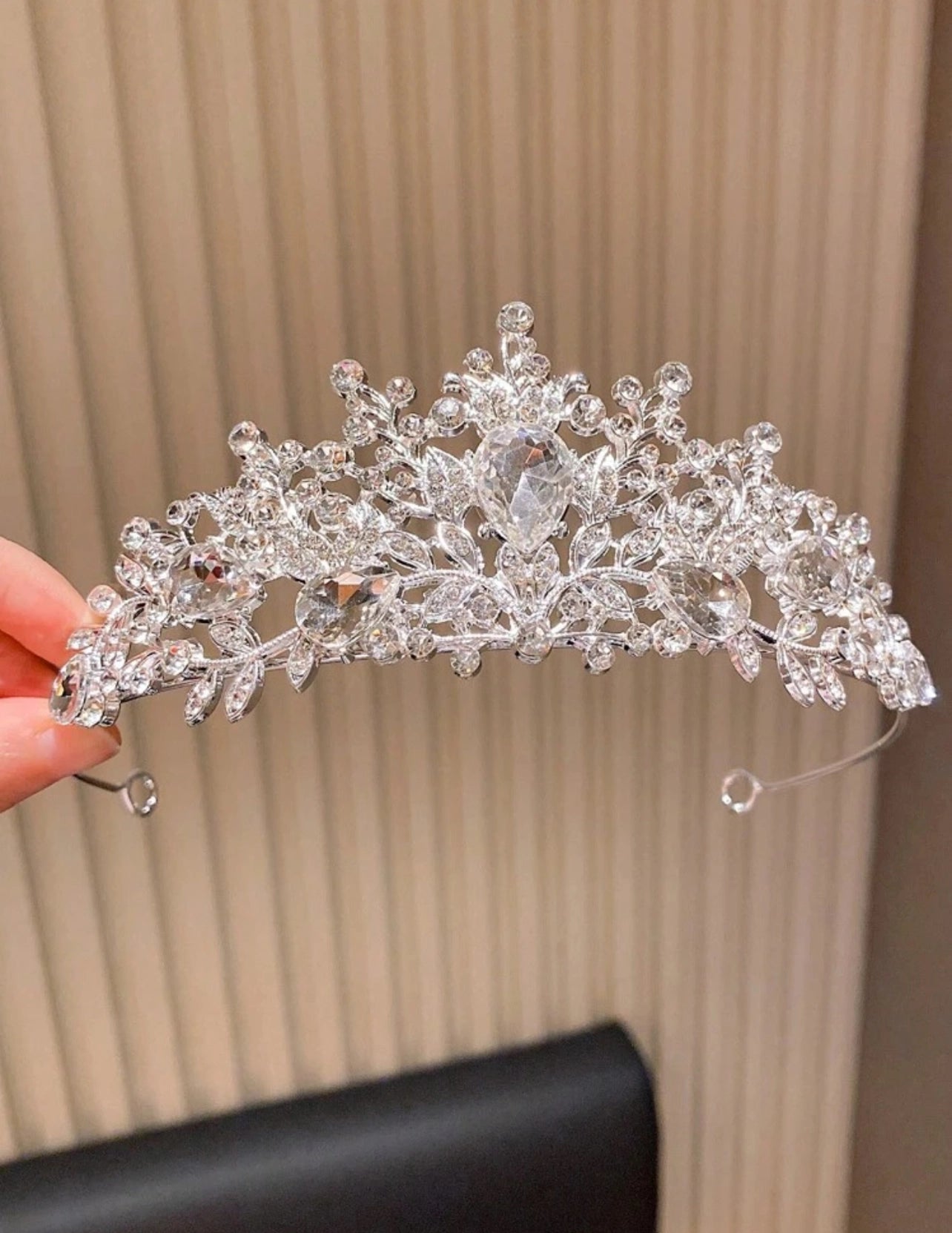 The true definition of elegance with dazzling details. This enchanting tiara sparkles like a work of art with its intricate floral and leaf motifs adorned with shimmering crystal stones. Designed to catch the light beautifully with every movement, it's the perfect finishing touch for birthdays, first communion, wedding, performances, and any special occasion. Key Features: Glamorous design with sparkling crystal stones Lightweight metal frame for comfortable wear Delicate floral and leaf detailing Perfectly pairs with princess-style dresses Guaranteed to turn heads with its radiant charm Crystal Bloom isn’t just a tiara. it’s a sparkling signature of style for little stars who love to shine💫