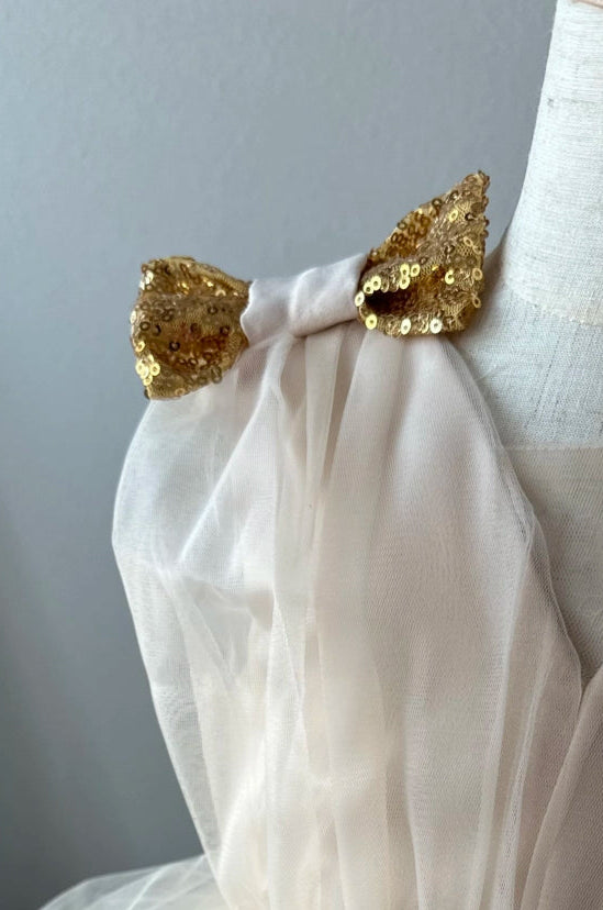 LAYERED TULLE SPECIAL OCCASION DRESS WITH SEQUIN BOW