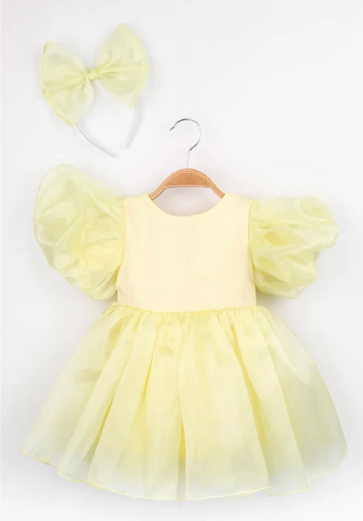 ORGANZA PUFFY ORGANZA BOW CROWN COMBINATION SPECIAL DAY PARTY DRESS