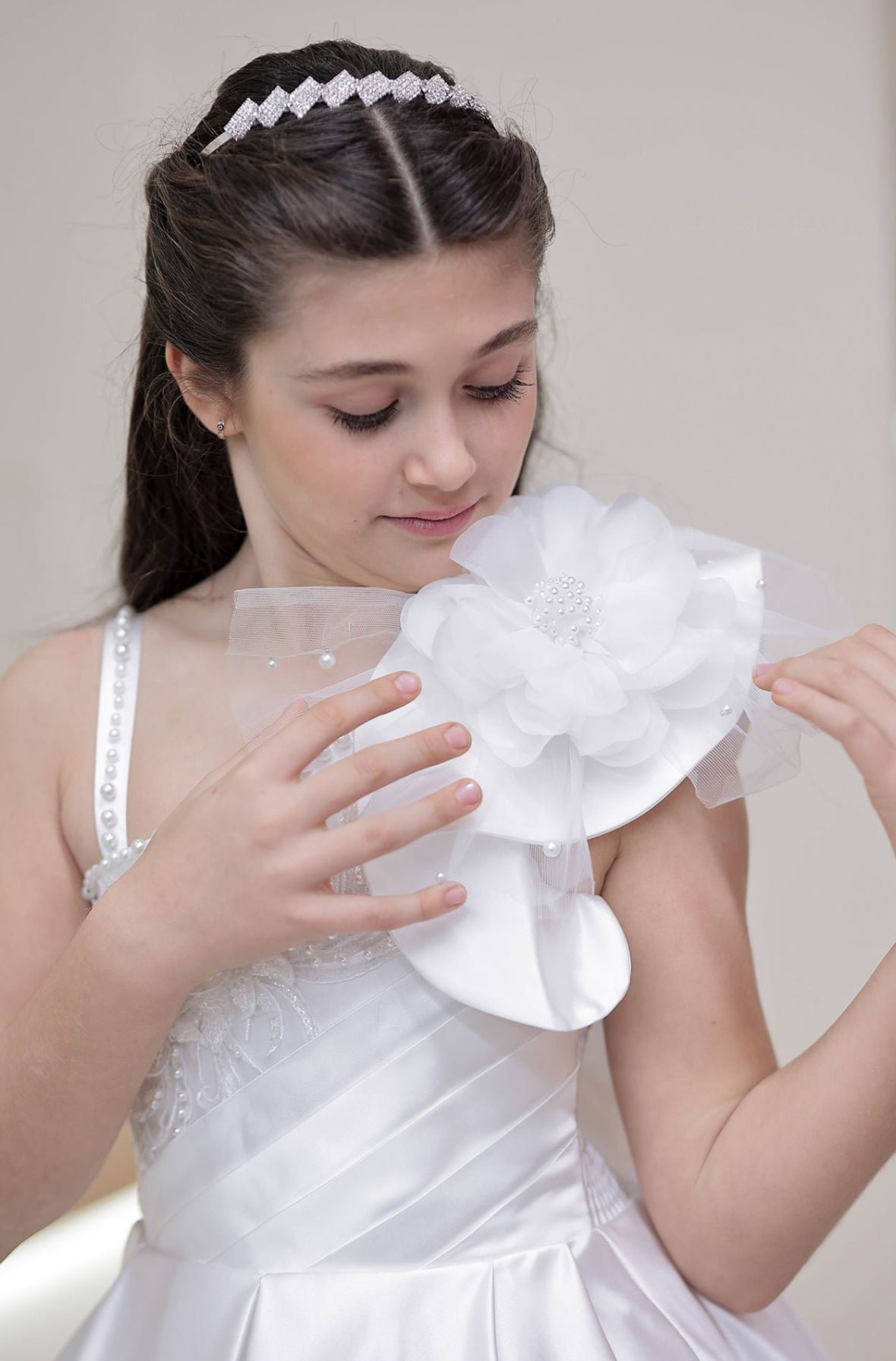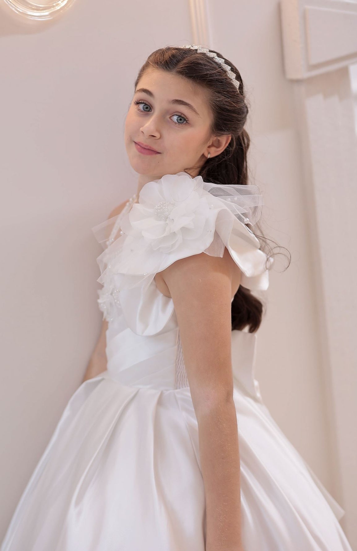 PEARL EMBROIDERED 3D FLOWER DETAILED SATIN WEDDING SPECIAL OCCASION COMMUNION DRESS 7-11 YEARS