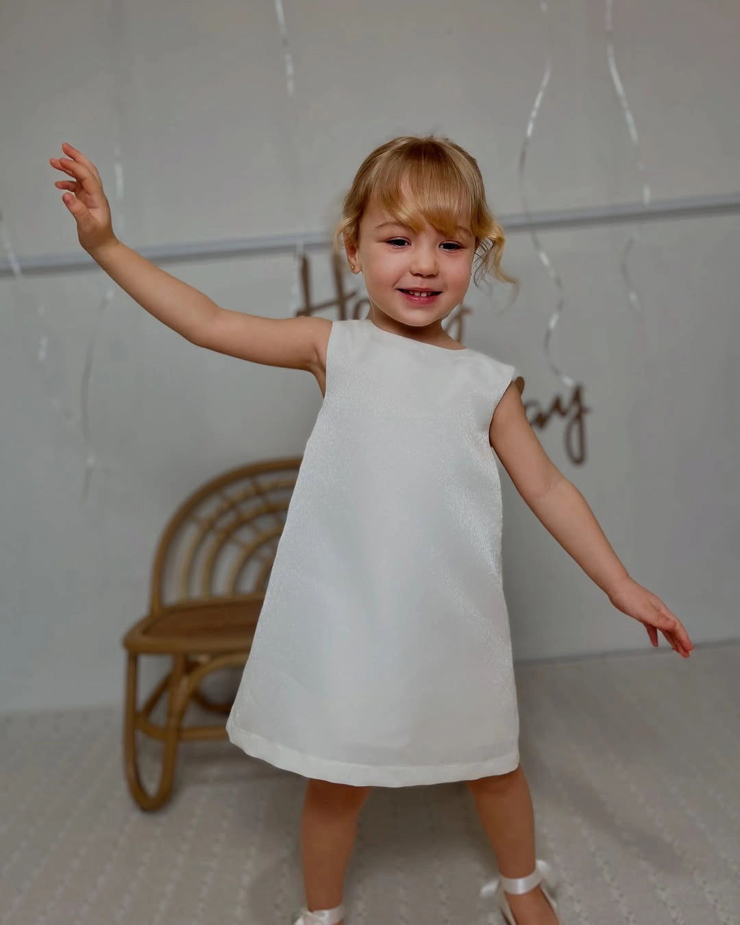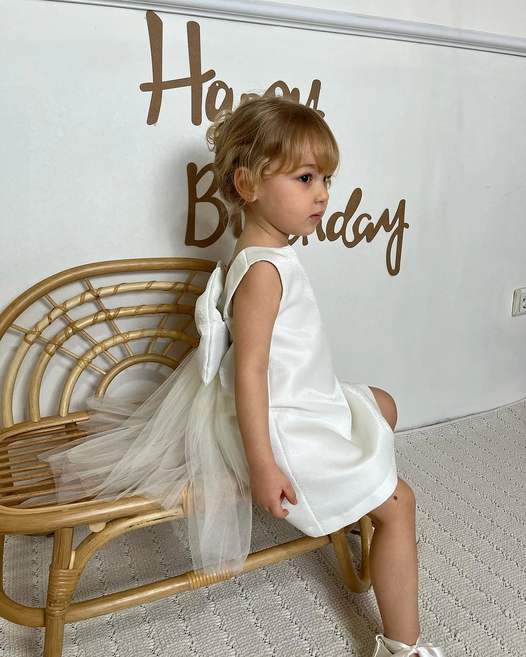 Elegance from a Sparkling Fairytale This special design dress brings out the purest form of elegance for my little princesses with its shimmering fabric. With its sparkly white texture and the oversized detachable tulle bow at the back, it will make her feel like a true fairytale character. The lightweight fabric allows for easy movement, and the flowing tulle adds joy to every twirl and dance. The bow is removable, giving you versatile styling options. Our sizes are true to fit; we recommend selecting according to your child's age. Lovingly made in Turkey. A magical choice for weddings, baptisms, birthdays, special celebrations, first birthdays, and unforgettable photoshoots! With this dress, every moment becomes a memory, and every photo a cherished keepsake... With the magical touch of Lydia Kids, we continue to touch the hearts of little stars. 🌟