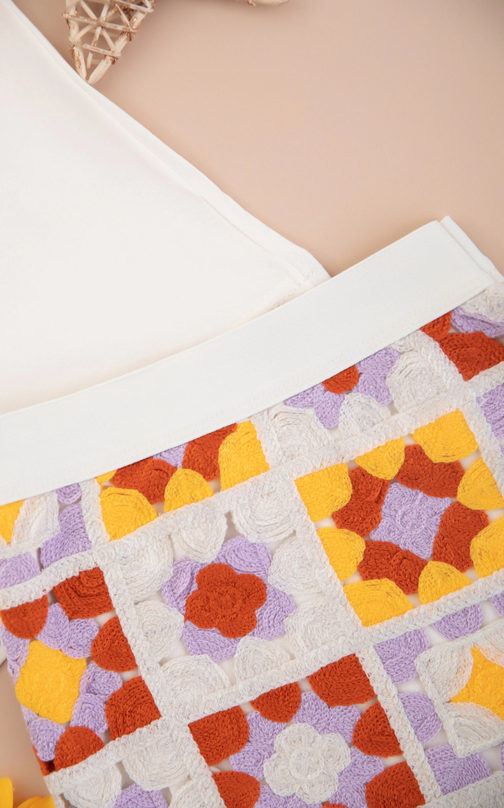 PEARLY DEDTAILED CROWN HAIR ACCESSORY SUZENE SKIRT AND T-SHIRT THREE PIECE CREAM SET