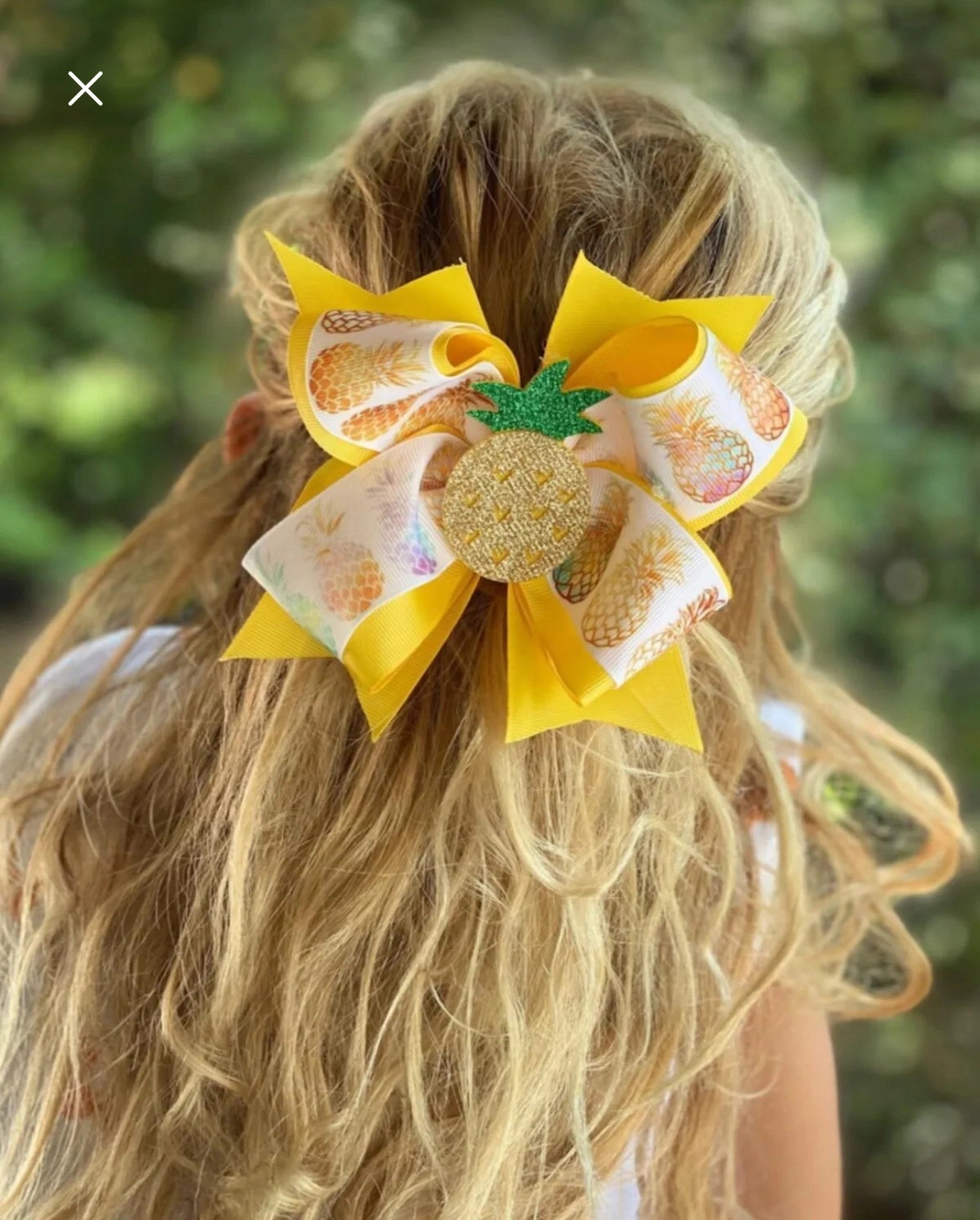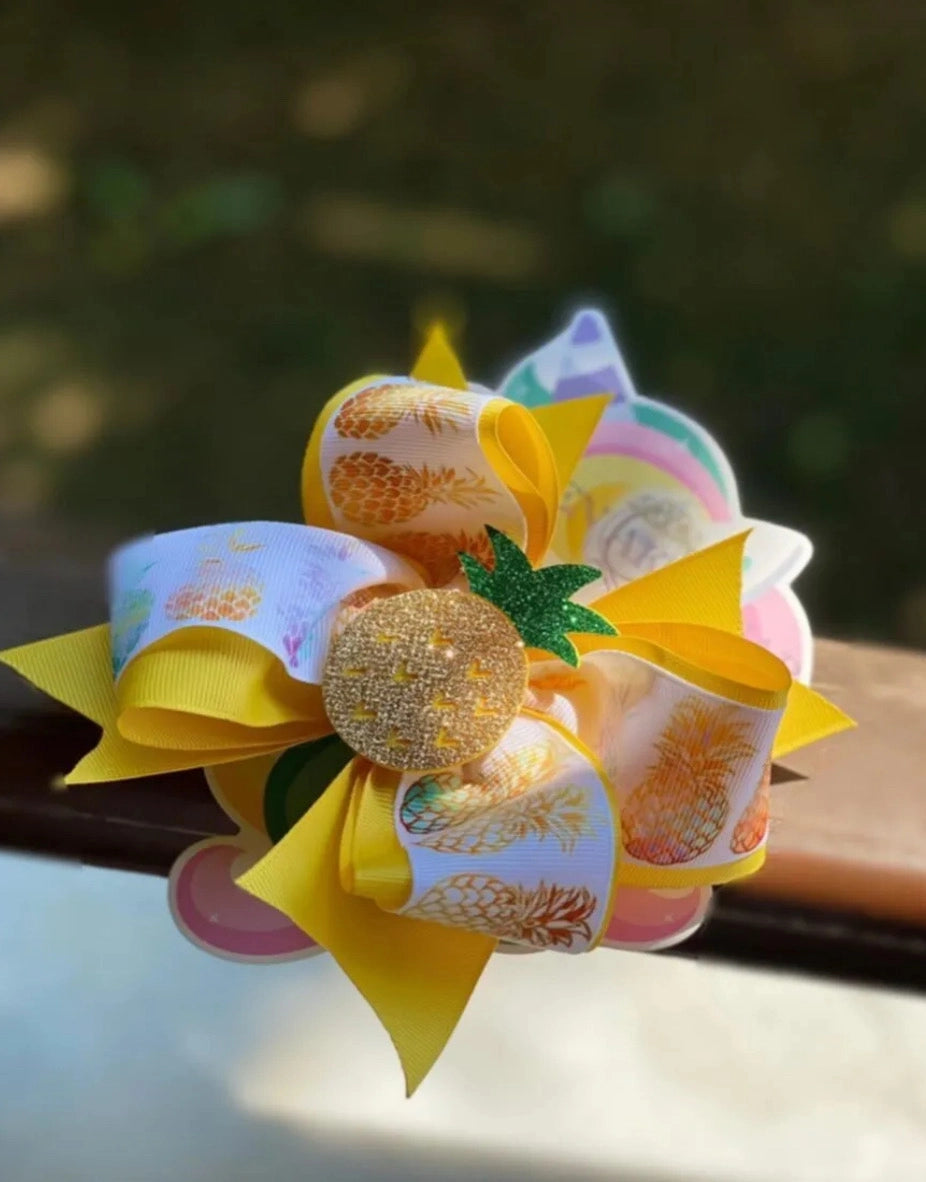 🍍 This fun and vibrant pineapple-themed hair bow adds a sweet tropical touch to your little one's style!