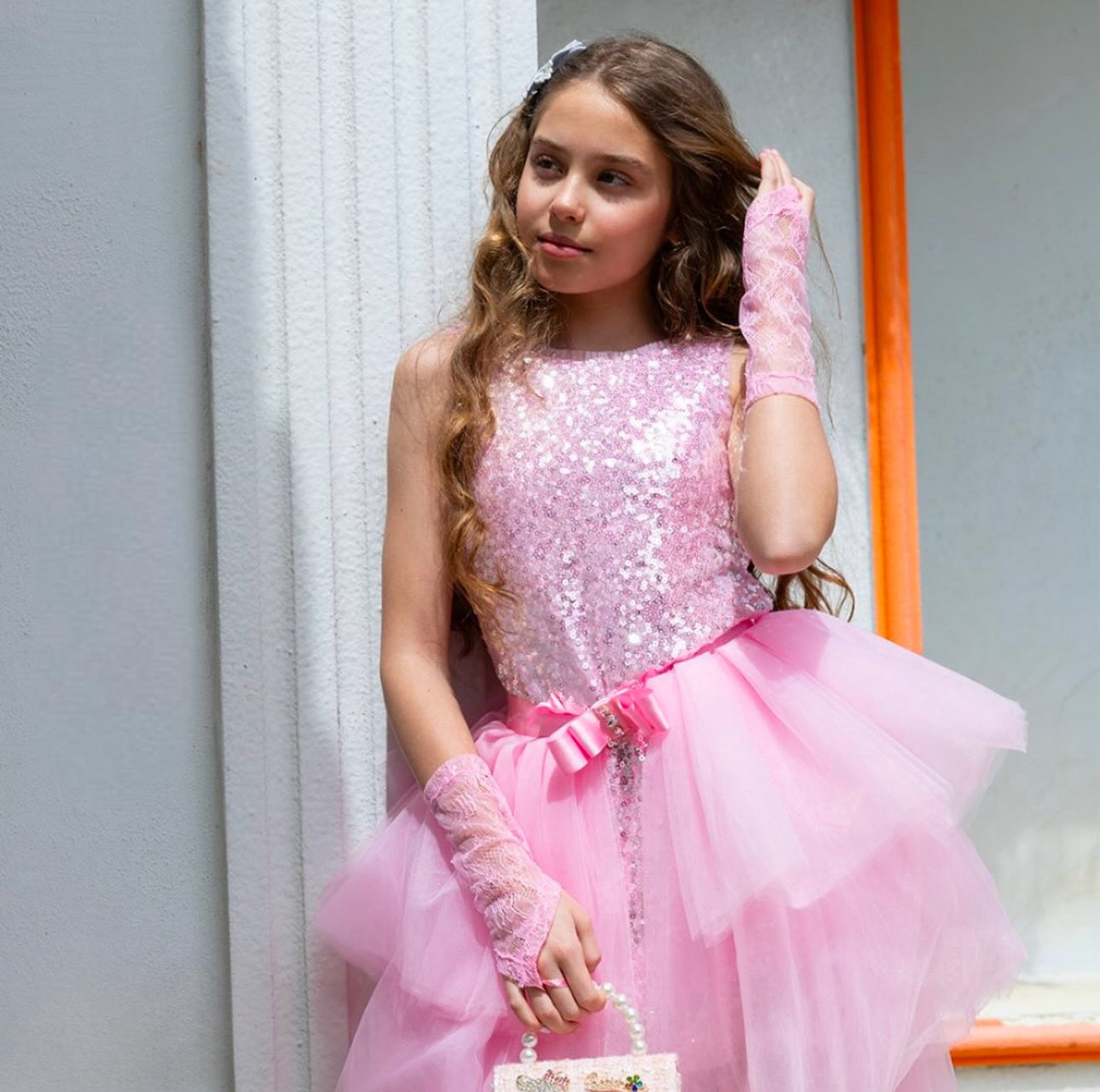 Soft layers of tulle, shimmering sequins, and a pastel pink glow a look made to turn every moment into a celebration 💕