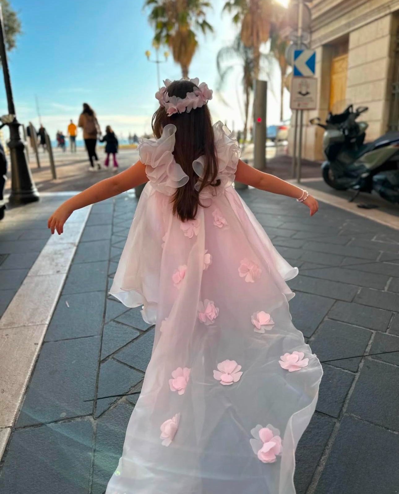 Designed especially for little princesses, this enchanting dress offers a dreamy look with its lightweight tulle and delicate floral details. Perfect for special occasions, this design stands out with its elegance and modern cut. ✨
