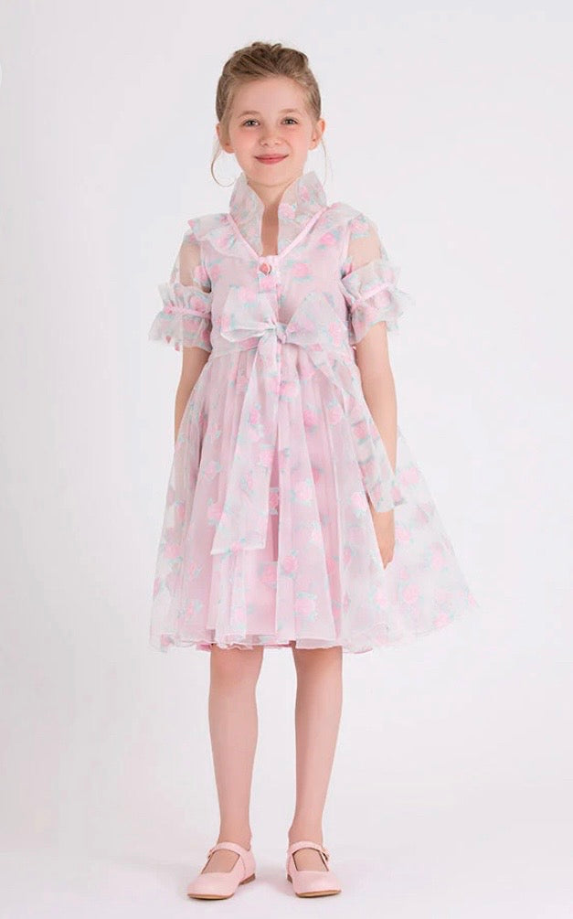 The Princess Grace Dress👑 is designed for little my princesses with its flowing tulle fabric, elegant floral patterns, and the sweetest details. The adorable ruffled sleeves, the delicate bow at the waist, and the most special touch: pink rose-shaped buttons! Why You'll Love This Dress: Pink rose buttons for a charming and unique touch Lightweight and breathable tulle fabric for all-day comfort Elegant ruffled sleeves and a delicate bow at the waist Perfect for birthdays, special celebrations, and unforgettable moments Designed in California, Manufactured in Europe. ✨