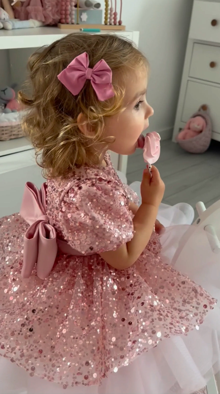 Designed to reflect the most beautiful blend of sparkle and elegance, this stunning dress ensures a dazzling look for special occasions! With its shimmering sequin embroidery, voluminous tulle skirt, and delicate bow details, it truly feels like a fairytale dress!