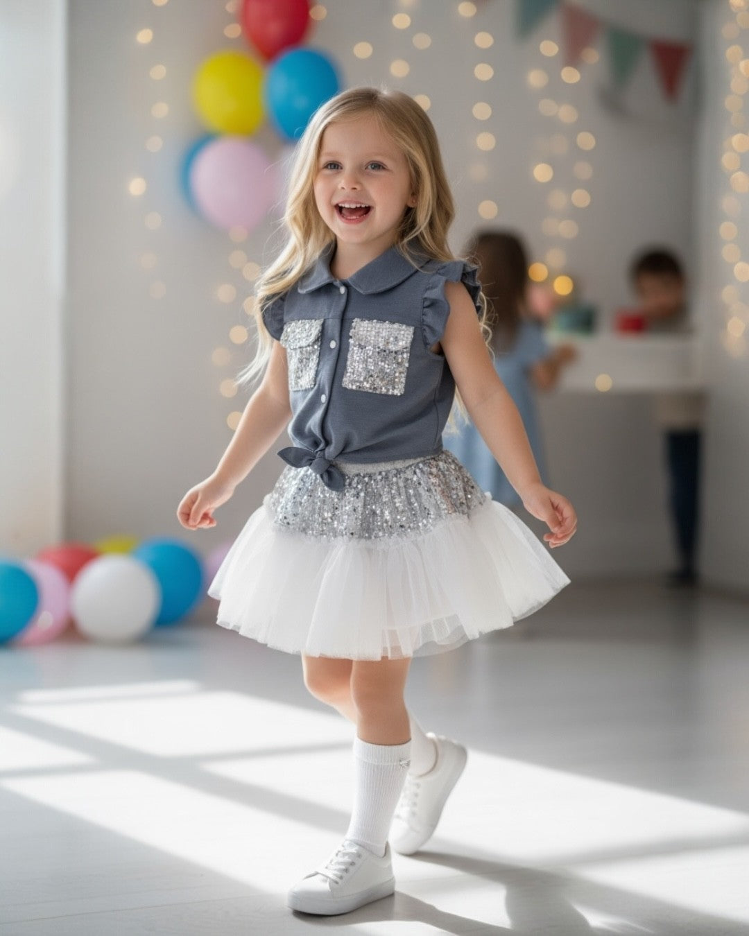 This shimmering outfit, specially designed for little princesses, dazzles with its modern and elegant touches! 🌟