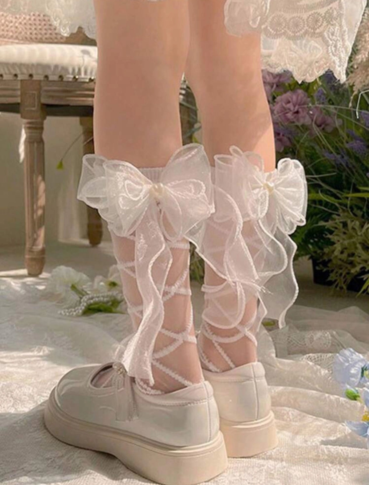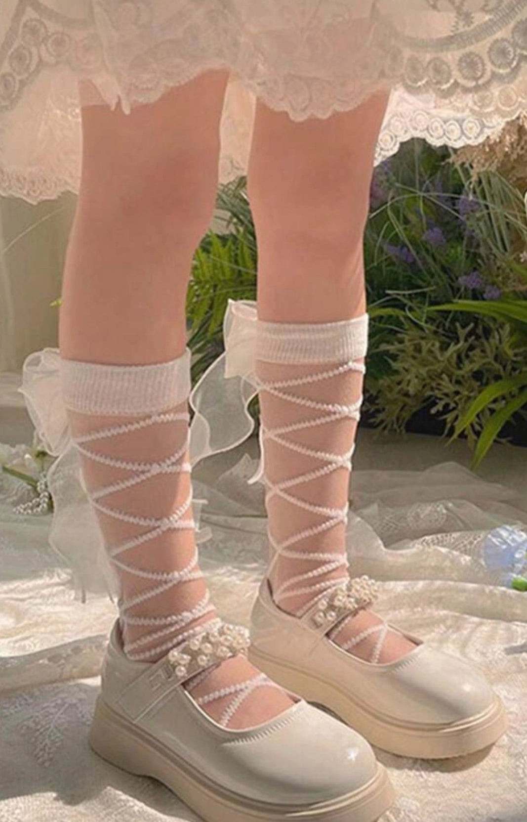 🧦 Elegant lace-up tulle socks completing the eye-catching look