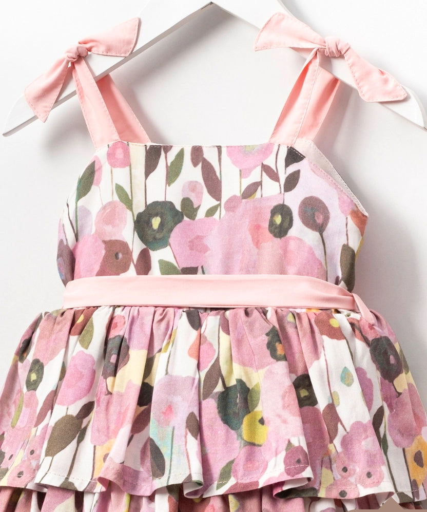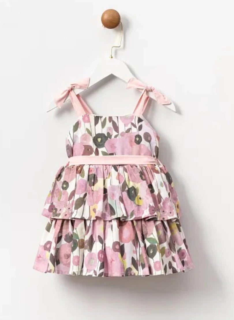 Bringing the freshness and elegance of nature, the Shoulder Tie Dress 🌸 is designed for little fashion icons! With soft pink tones, romantic floral patterns, and a tiered ruffle skirt, this dress adds a touch of magic to every moment. The delicate bow-tie shoulder straps add an extra sweet detail, while the lightweight, breathable fabric ensures all-day comfort. %100 cotton fabric, %100 cotton lining. Designed for birthday parties, spring outings, and special occasions, this dress is a perfect choice for my little icons and has been lovingly made in Turkey just for them.