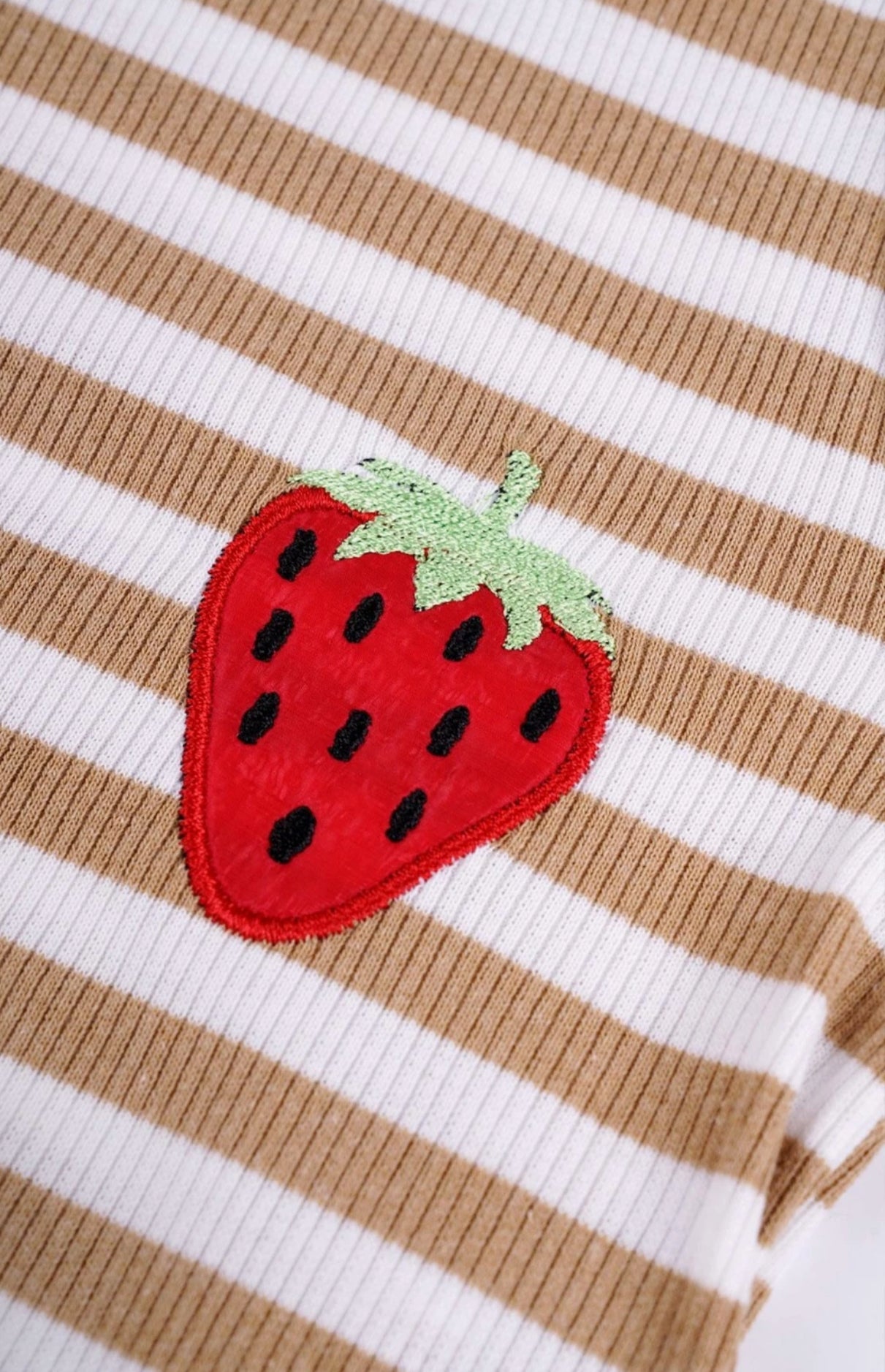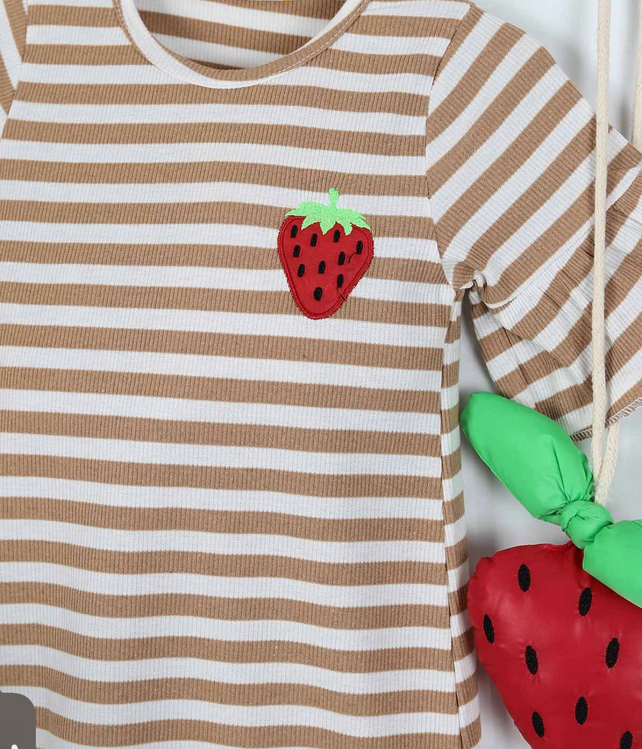 We’ve prepared a super comfy and adorable outfit for our little princesses! 🤍 With its striped fabric, cute strawberry applique, and the sweetest matching strawberry bag. Plus, it comes with heart-shaped sunglasses to add even more energy to your girl’s style. ☀️✨