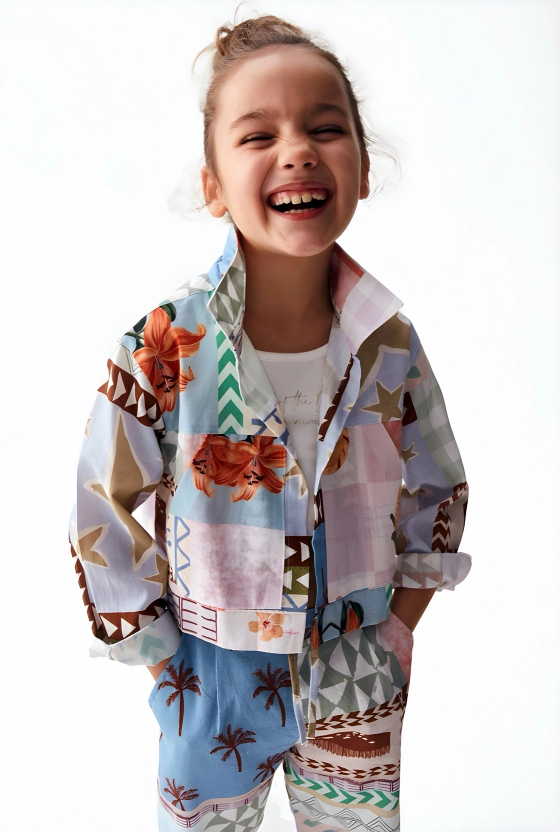 🌴 Details: Button details on the jacket for easy wear, and a modern summer print on the top.