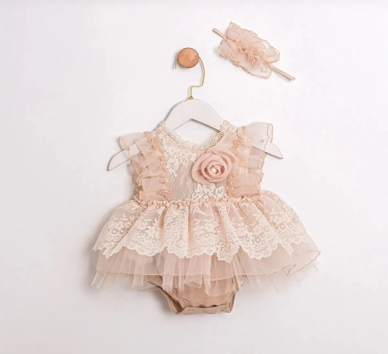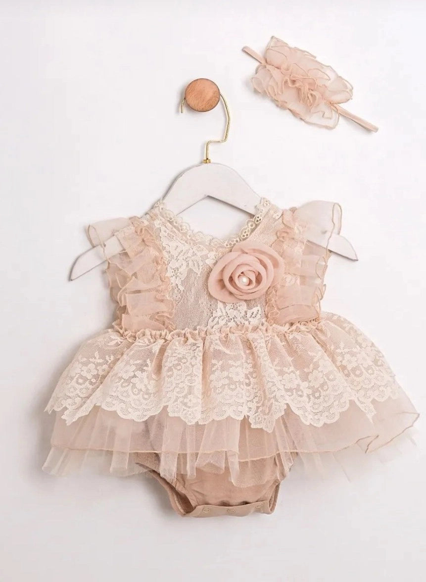 TULLE HEADBAND SET WITH RIBBON LACE COLLAR FLORAL ACCESSORY LACE AND TULLE PUFFY SKIRT STYLE ROMPER FOR BIRTHDAYS CHRISTENINGS AND WEDDINGS
