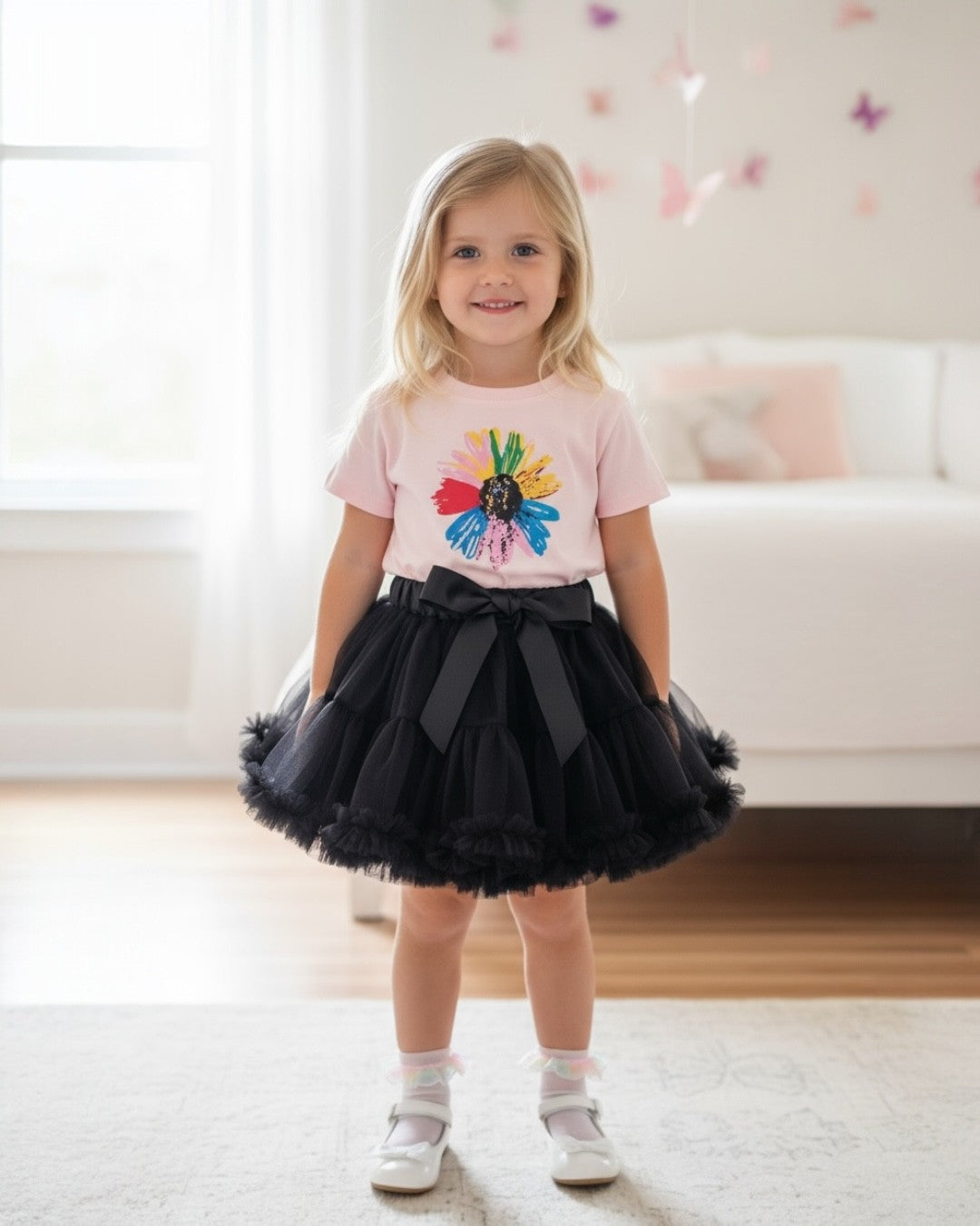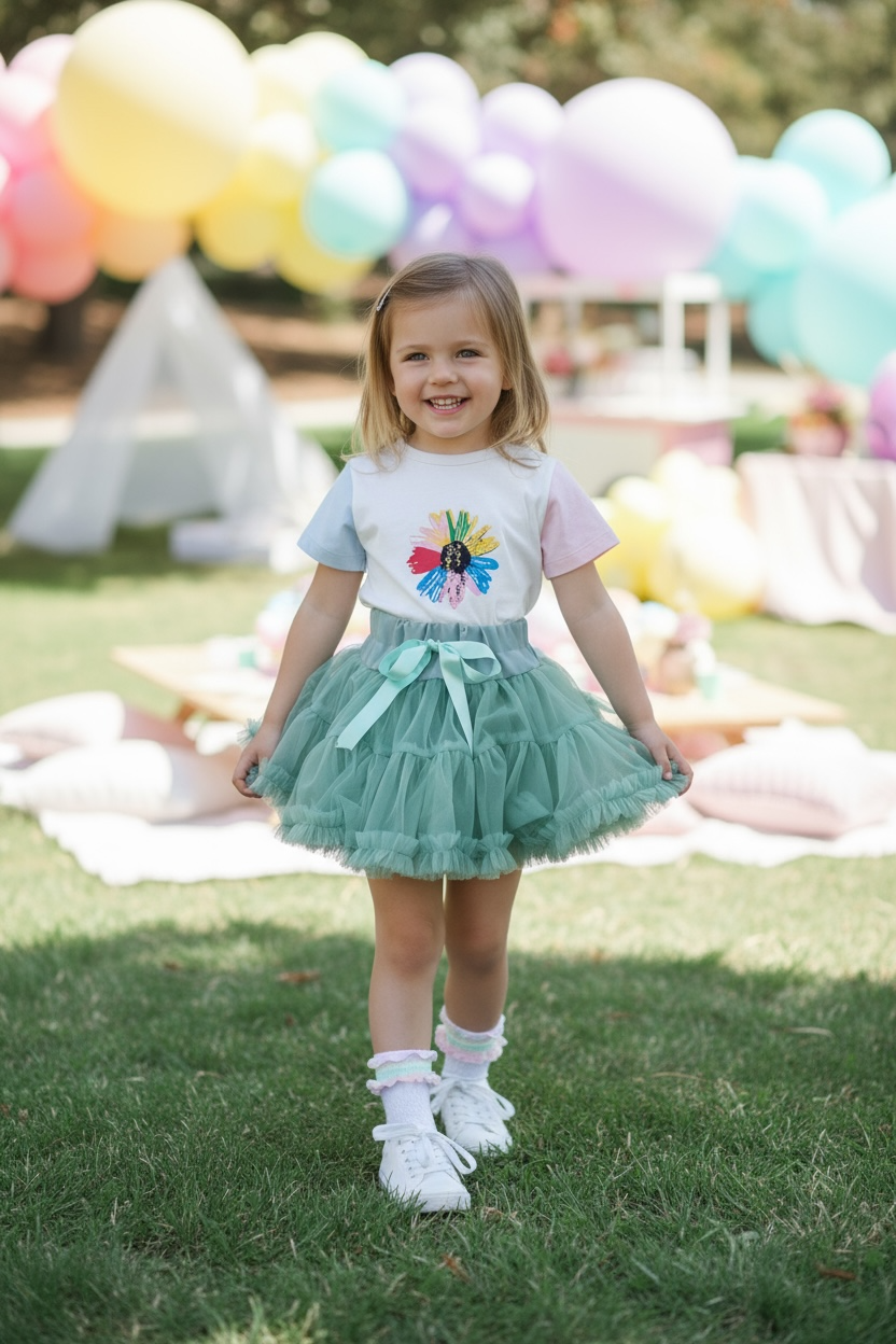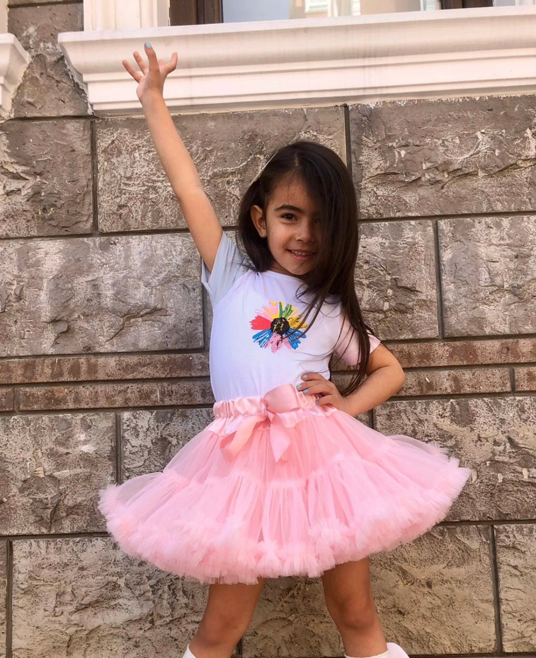 This wonderful set, specially designed for my little princesses, combines comfort and elegance! With its fun printed t-shirt, fluffy pink tutu skirt, and adorable colorful ruffled party socks, this outfit will make every moment special for our little ones! It will add elegance to their birthday parties and special event celebrations! 💖