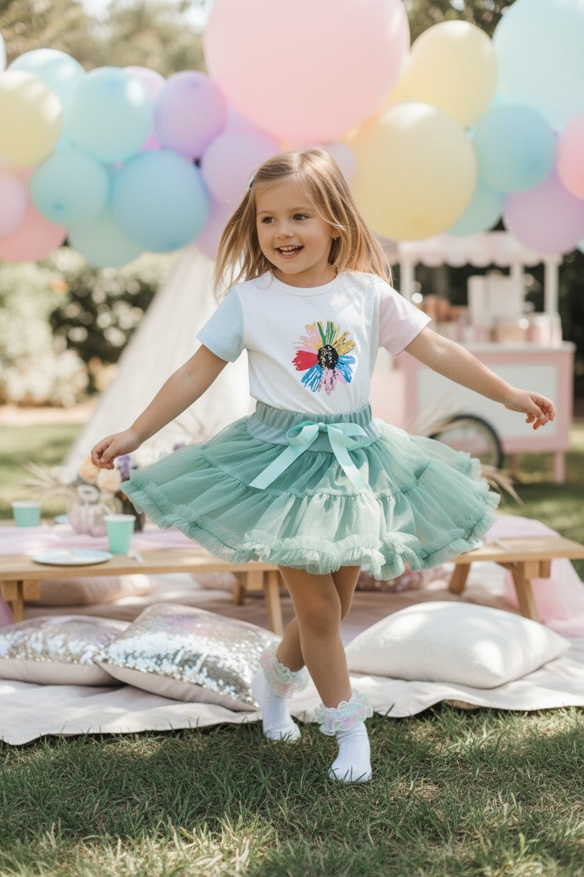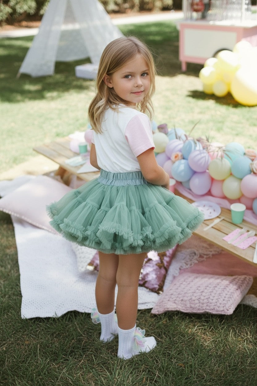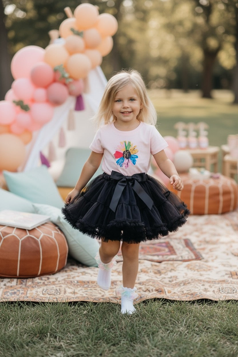This wonderful set, specially designed for my little princesses, combines comfort and elegance! With its fun printed t-shirt, fluffy pink tutu skirt, and adorable colorful ruffled party socks, this outfit will make every moment special for our little ones! It will add elegance to their birthday parties and special event celebrations! 💖