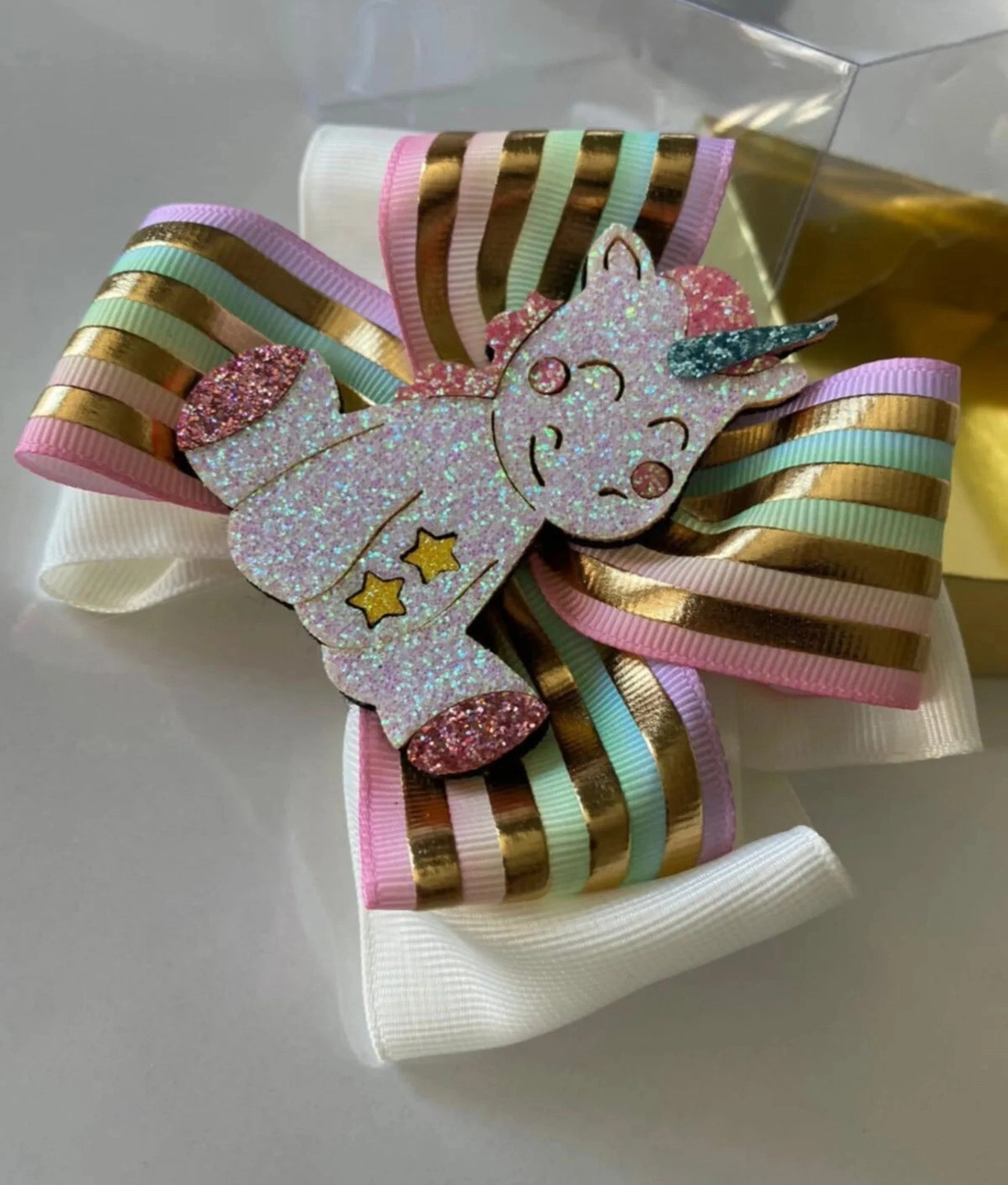 This enchanting hair accessory features a dazzling unicorn design adorned with sparkling details and colorful ribbon accents. The unicorn figure is beautifully complemented by pastel-toned ribbons and golden highlights, creating a perfect blend of elegance and fun. Designed especially for kids and unicorn lovers, this clip adds a touch of charm to any occasion from birthday parties to everyday wear. With its durable design and comfortable use, it is a strong candidate to become one of my little ones' favorite accessories! 🌈✨ Made in Turkey.